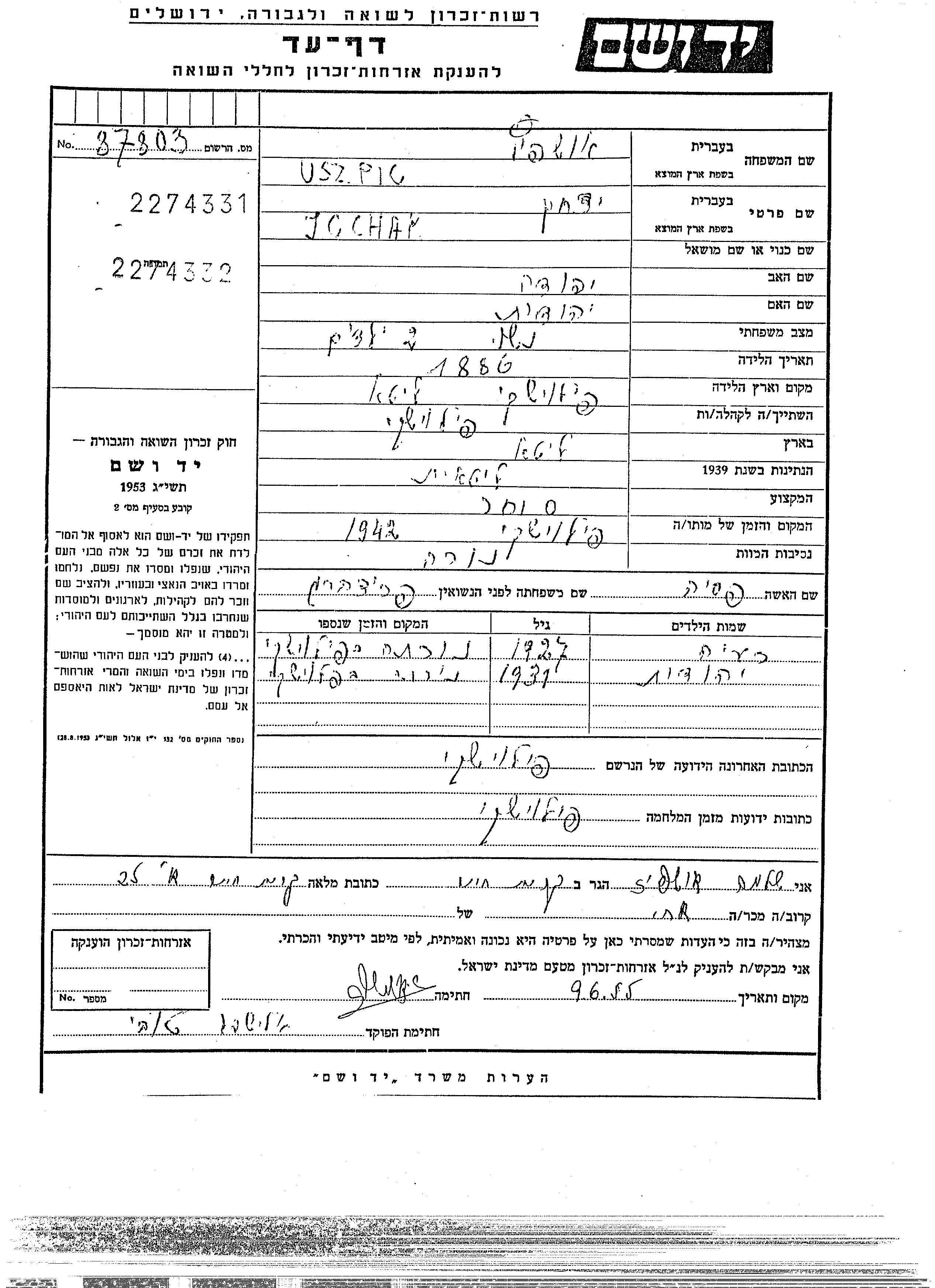 Yad Vashem - Gedenkblätter Sammlung