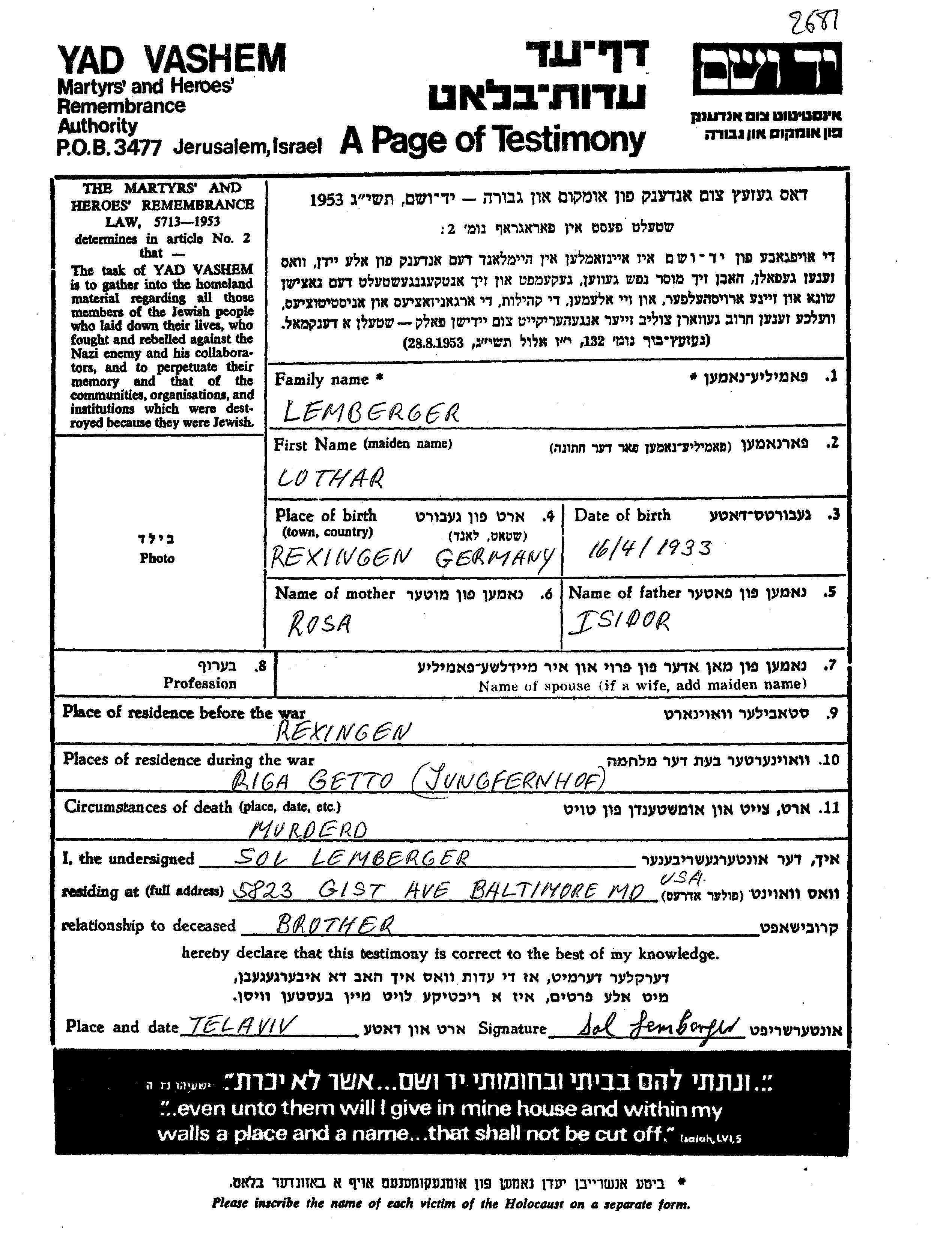 Lothar wurde in der Schoah ermordet. Todesort: Jungfernhof, Lettland.