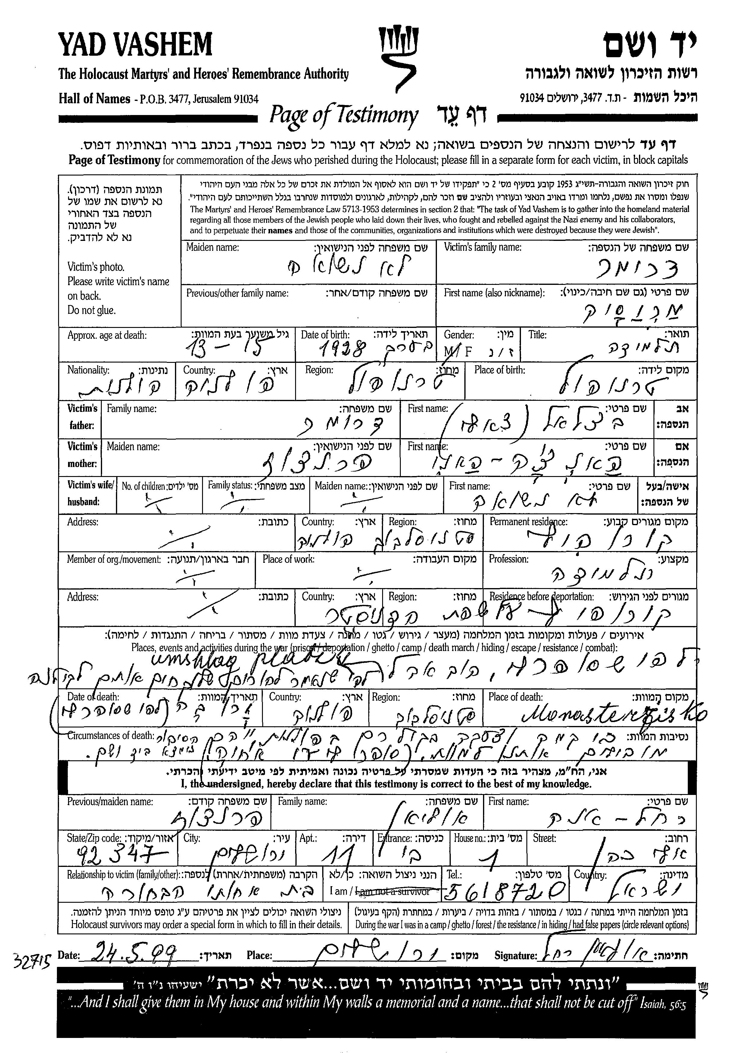 Drimmer | Miriam Maria | Monasterzyska, Polen | Gedenkblatt | |
