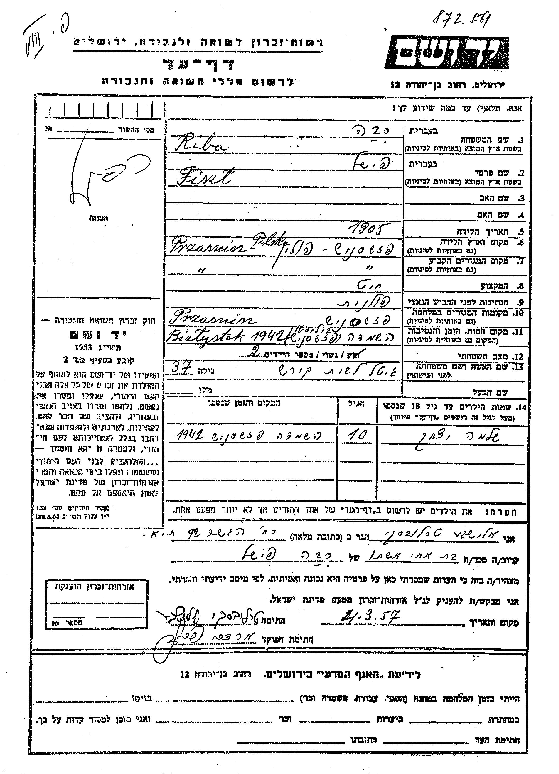 Suche nach einem Todesjahr im Zeitraum der Holocaust: 1933 bis 1945. Bitte wählen Sie 'Exakt' im Auswahlmenü, um nur nach einem einzelnen Jahr zu suchen, alternativ können Sie die flexibleren Optionen '+/- 2 Jahre' oder '+/- 5 Jahre' wählen.