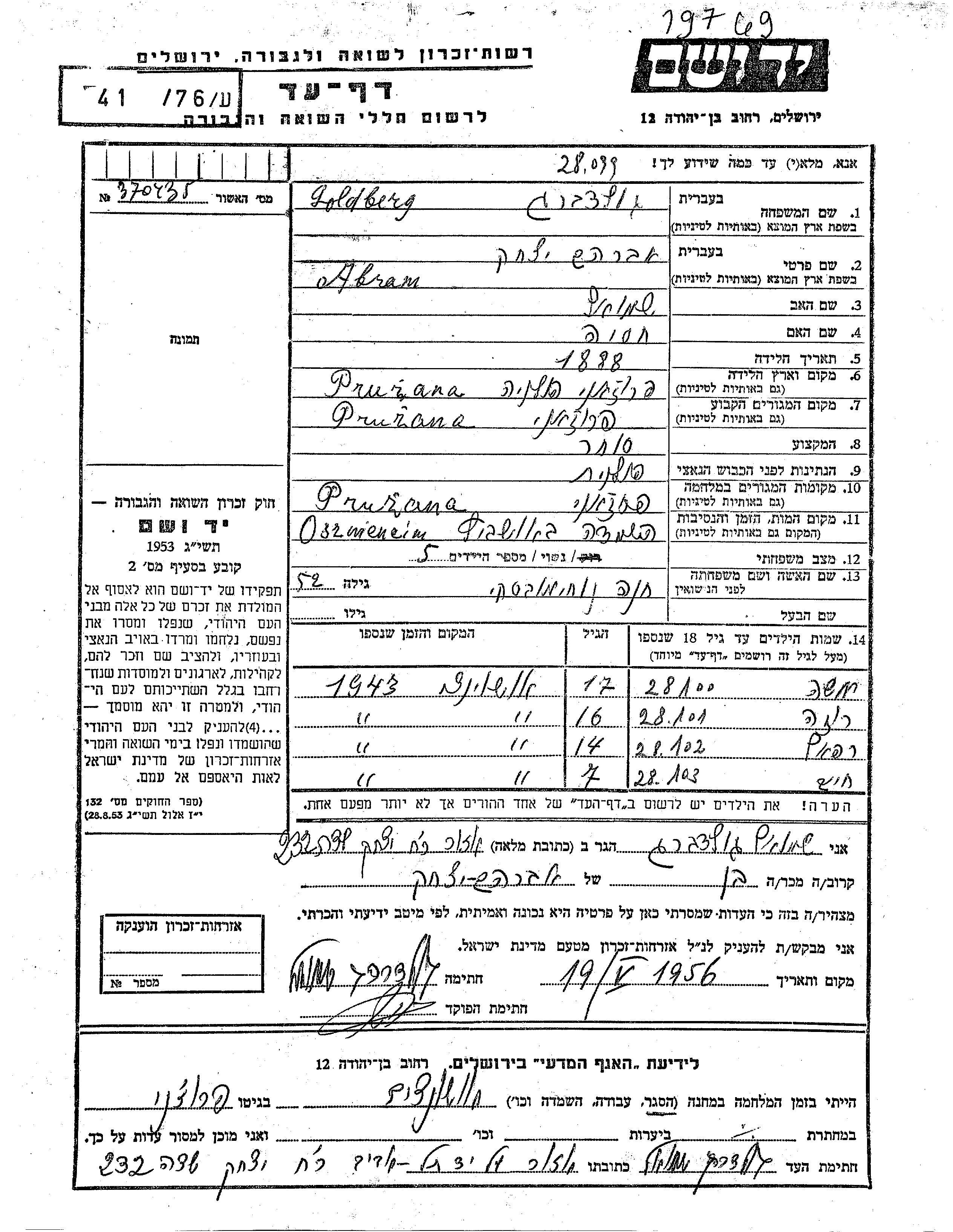 Rafael Goldberg. Vor dem Zweiten Weltkrieg lebte er in Piotrkow Trybunalski, Polen.