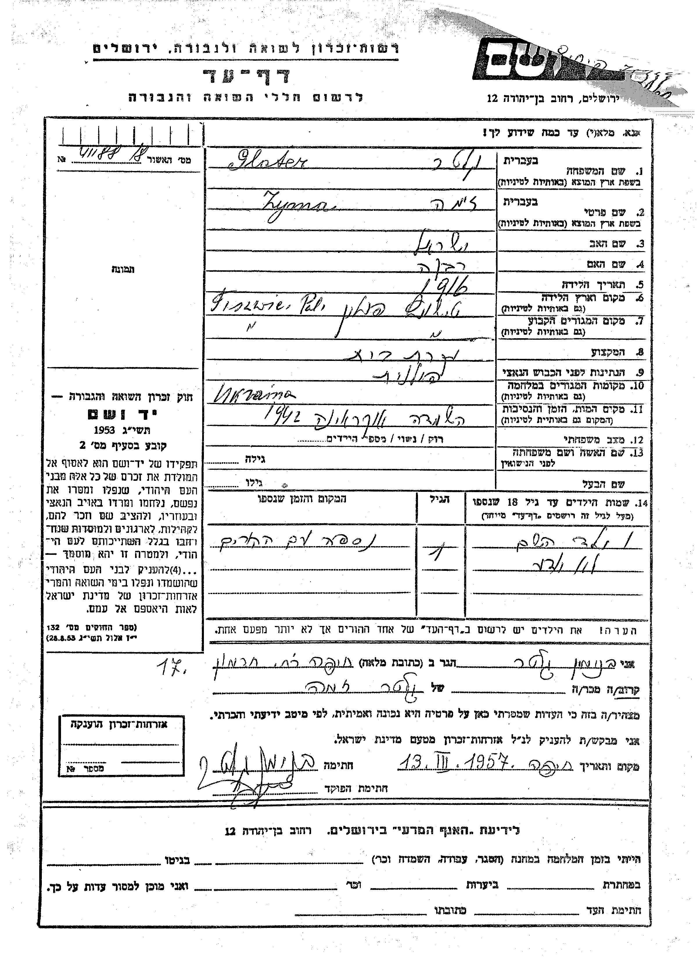 | Glater | Zyama Zima | 1916 | Tishvitz, Polen | Gedenkblatt |