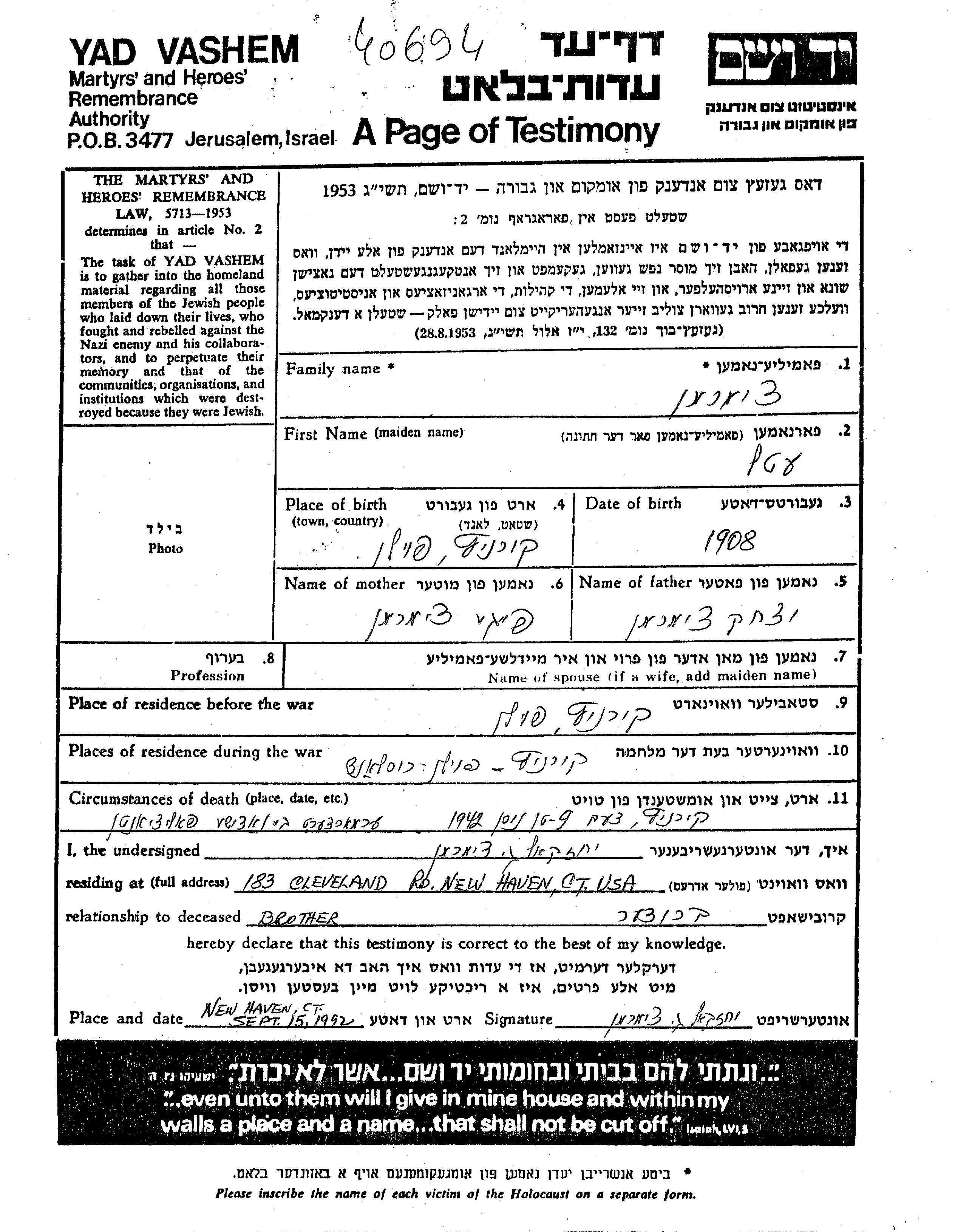 | Tzimerman | Etel | Kuriniec, Polen | Verfolgtenliste | |