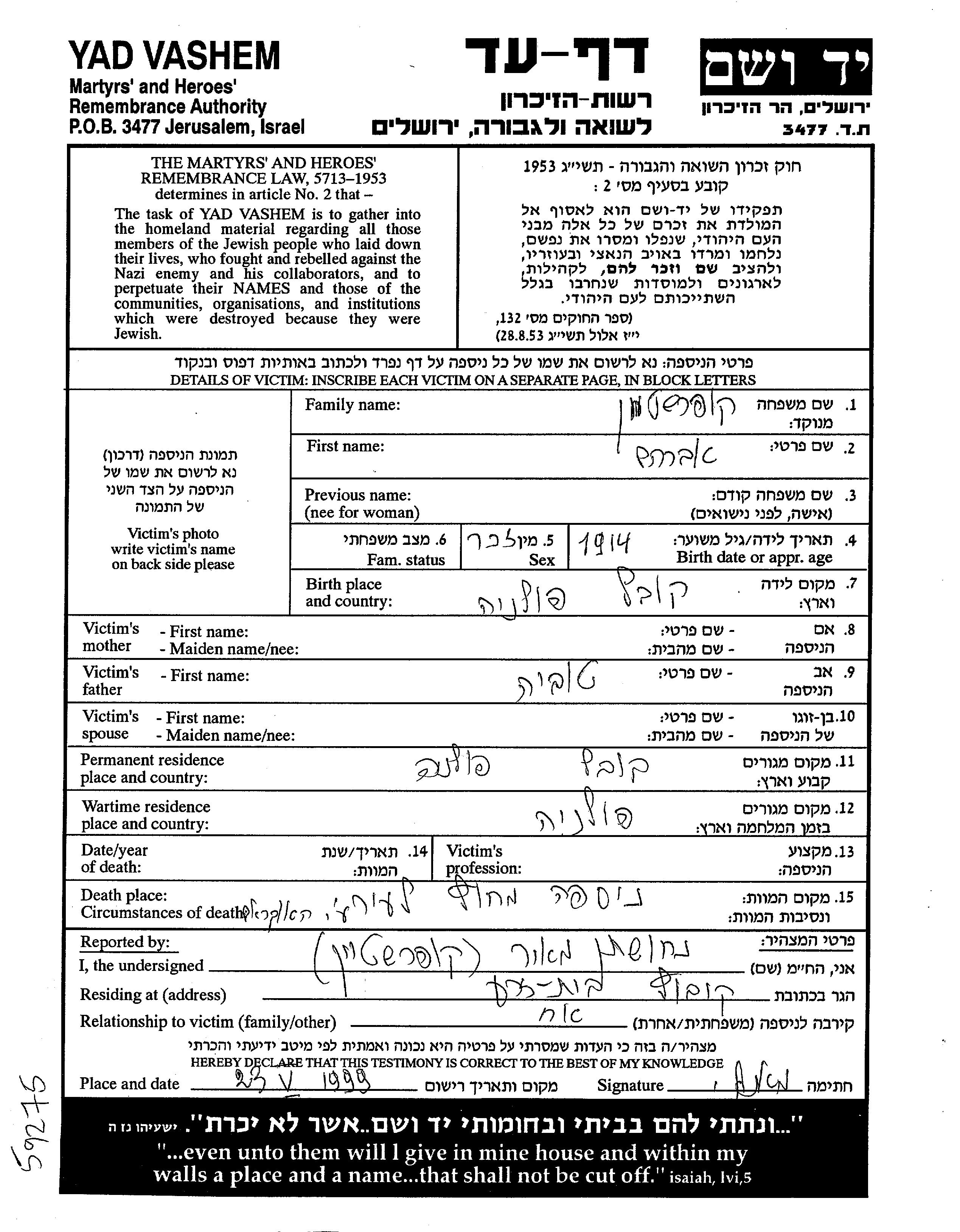 Kupershtein Avraham 1914 Kowel, Polen Gedenkblatt