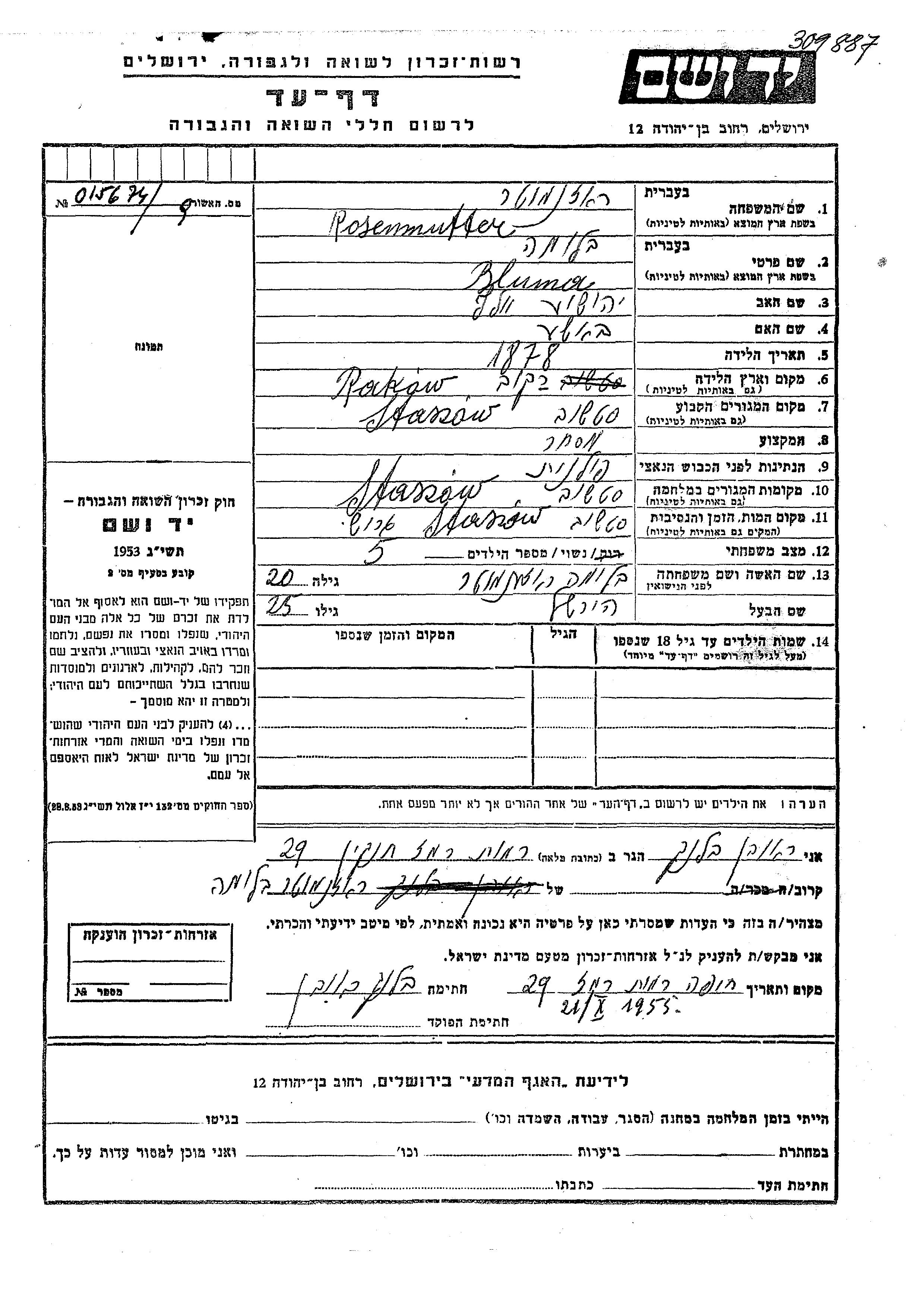 Bluma Rosenmutter, geb. Rosenmutter wurde im Jahr 1878 in Rakow, Polen geboren. Sie war Kaufmann/-frau. Vor dem Zweiten Weltkrieg lebte sie in Staszow, Polen.