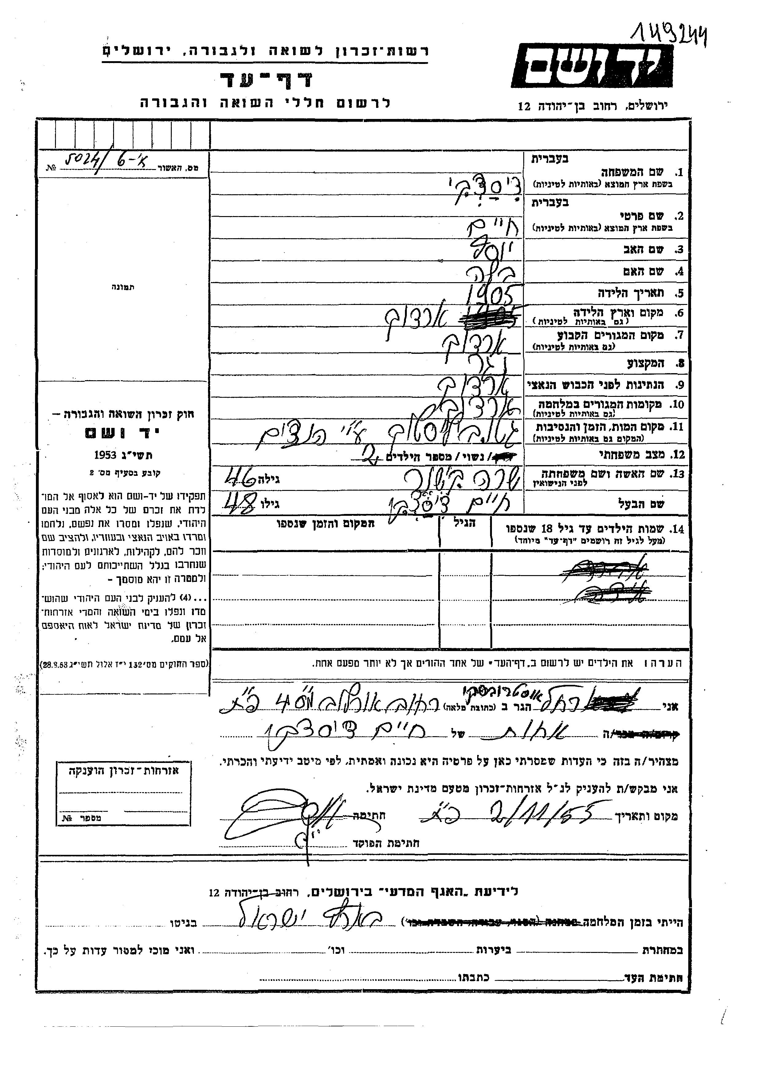 Khaim wurde in der Schoah ermordet. Todesort: Bialystok, Polen.
