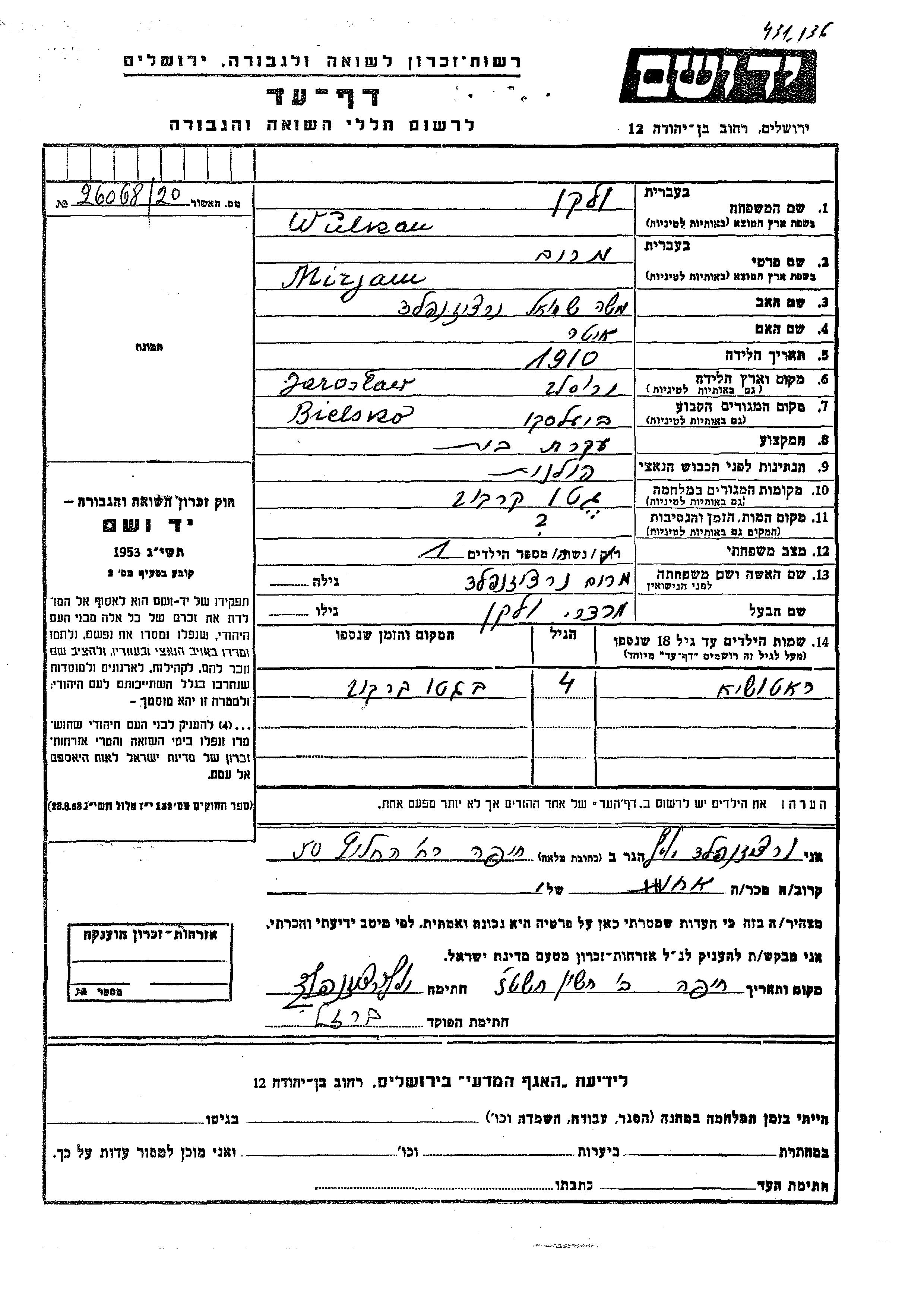 Ratushia Wulkan Volken. Vor dem Zweiten Weltkrieg lebte sie in Bielsko, Polen.