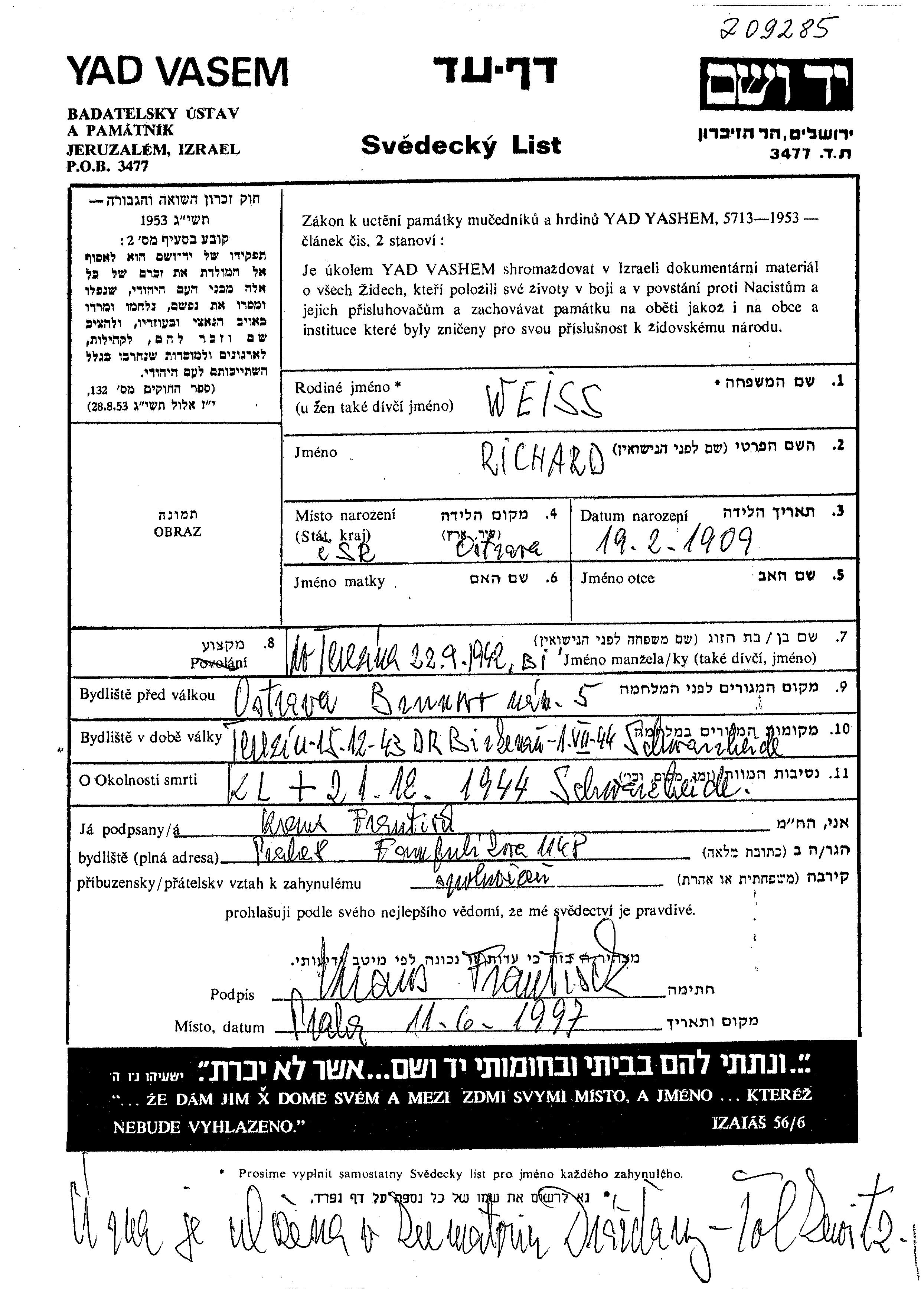 Weiss | Richard | 1909 | Moravska Ostrava, Tschechoslowakei | Verfolgtenliste |