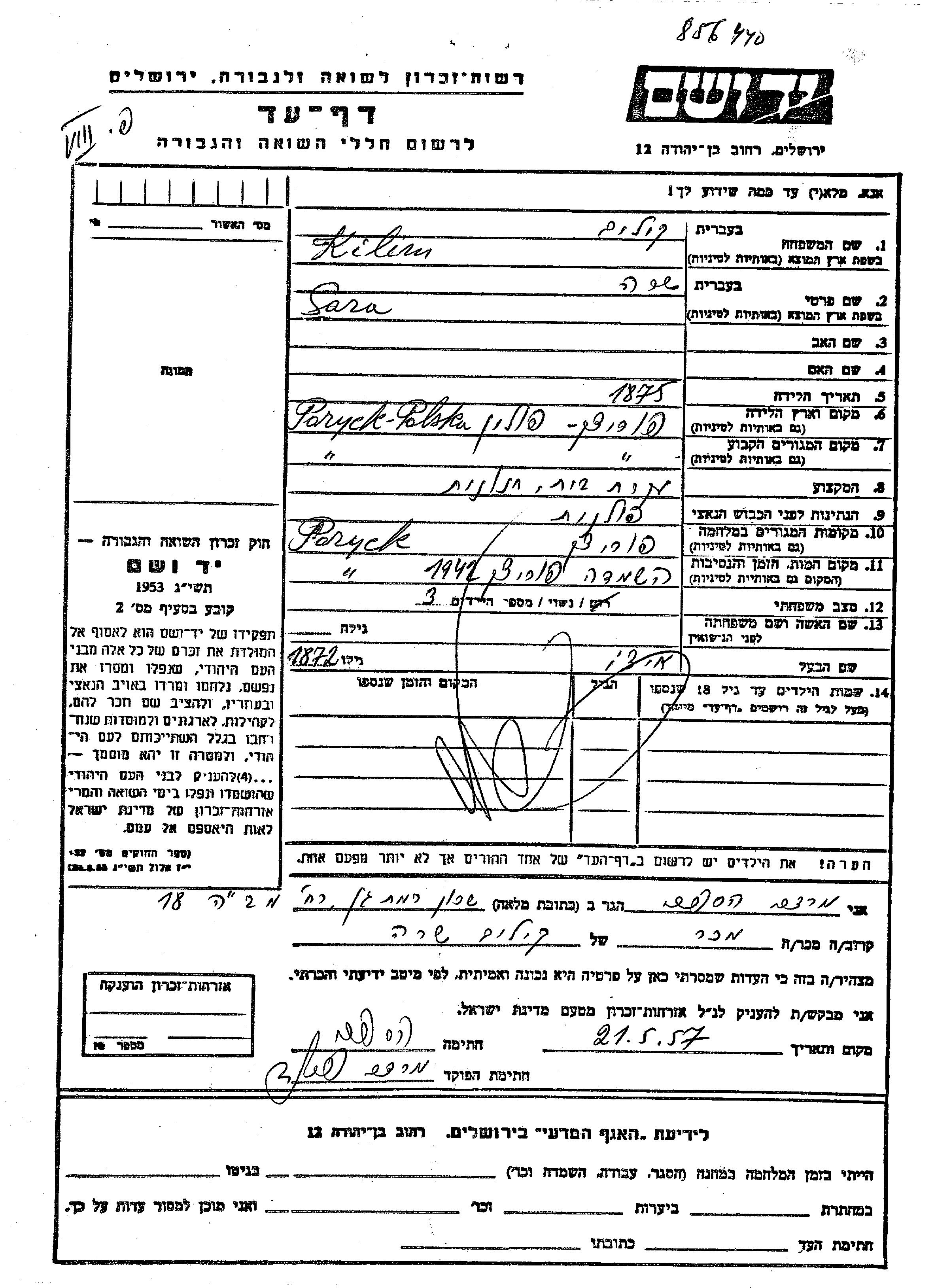 Sara Kilim wurde im Jahr 1875 in Poryck, Polen geboren. Vor dem Zweiten Weltkrieg lebte sie in Poryck, Polen.