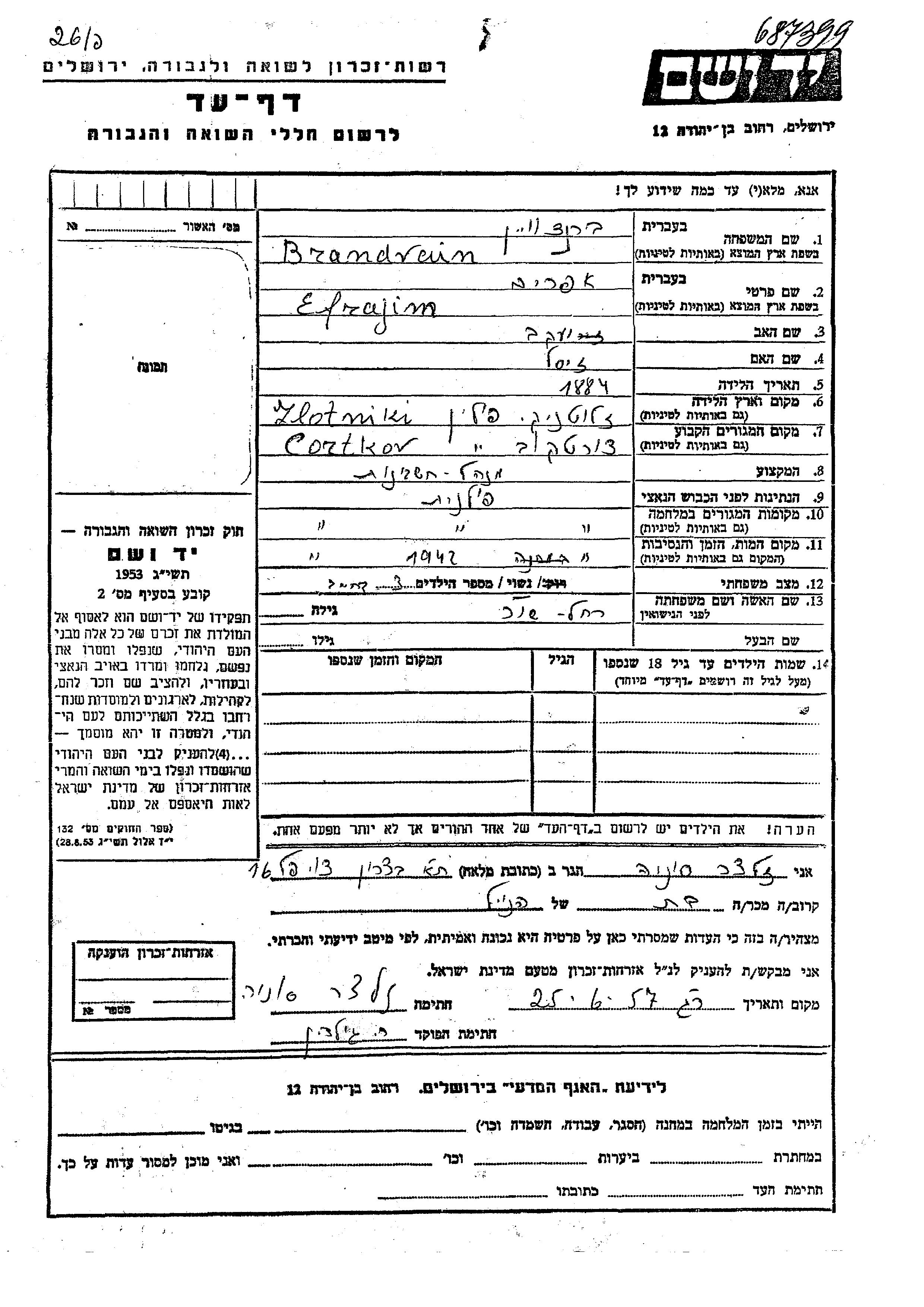 | Brandvein | Efraim | Czortkow, Polen | Liste ermordeter Juden aus Gedenkbuechern (Yizkor Books) |