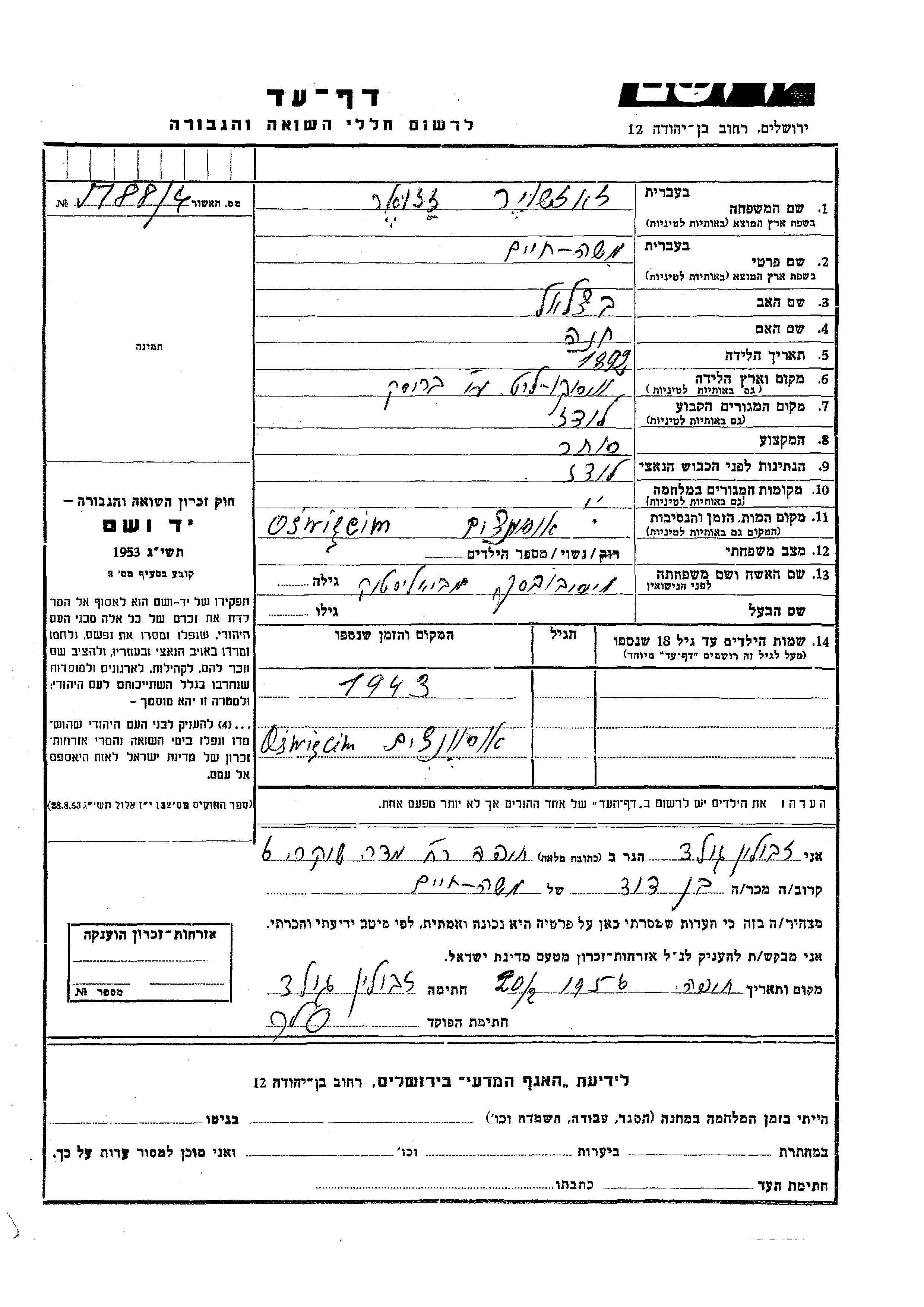 Moshe Khaim wurde in der Schoah ermordet. Todesort: Auschwitz, Polen.