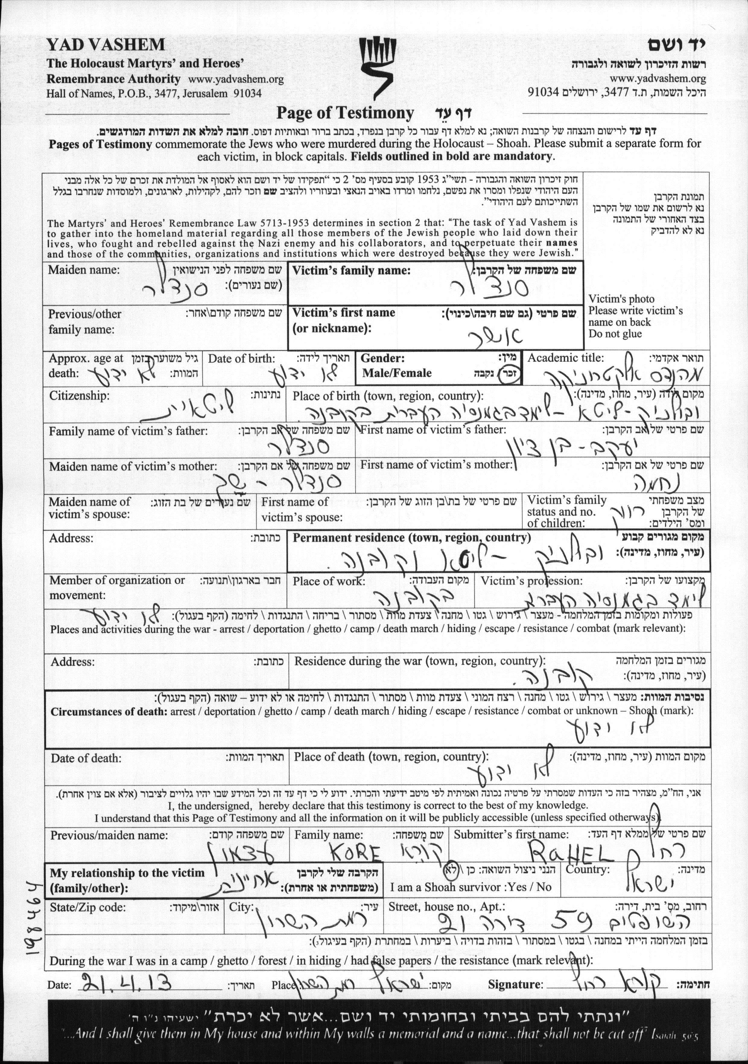 Aser wurde in der Schoah ermordet. Todesort: unbekannter Ort.