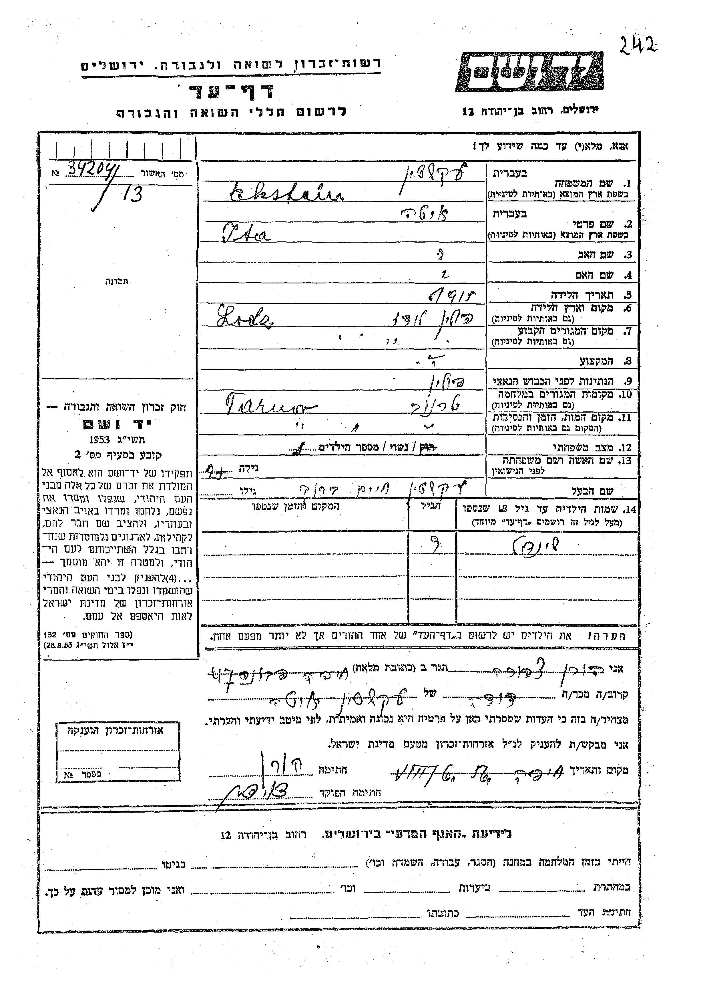 Suche nach einem Todesjahr im Zeitraum der Holocaust: 1933 bis 1945. Bitte wählen Sie 'Exakt' im Auswahlmenü, um nur nach einem einzelnen Jahr zu suchen, alternativ können Sie die flexibleren Optionen '+/- 2 Jahre' oder '+/- 5 Jahre' wählen.