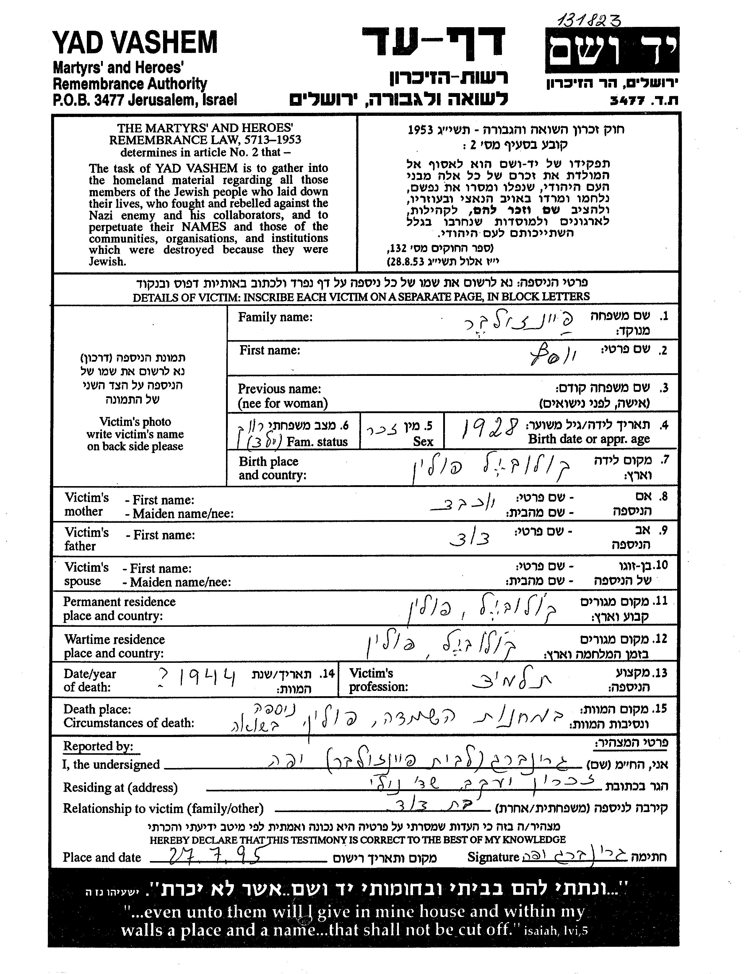 Yosef wurde in der Schoah ermordet. Todesort: Polen im Jahr 1944.