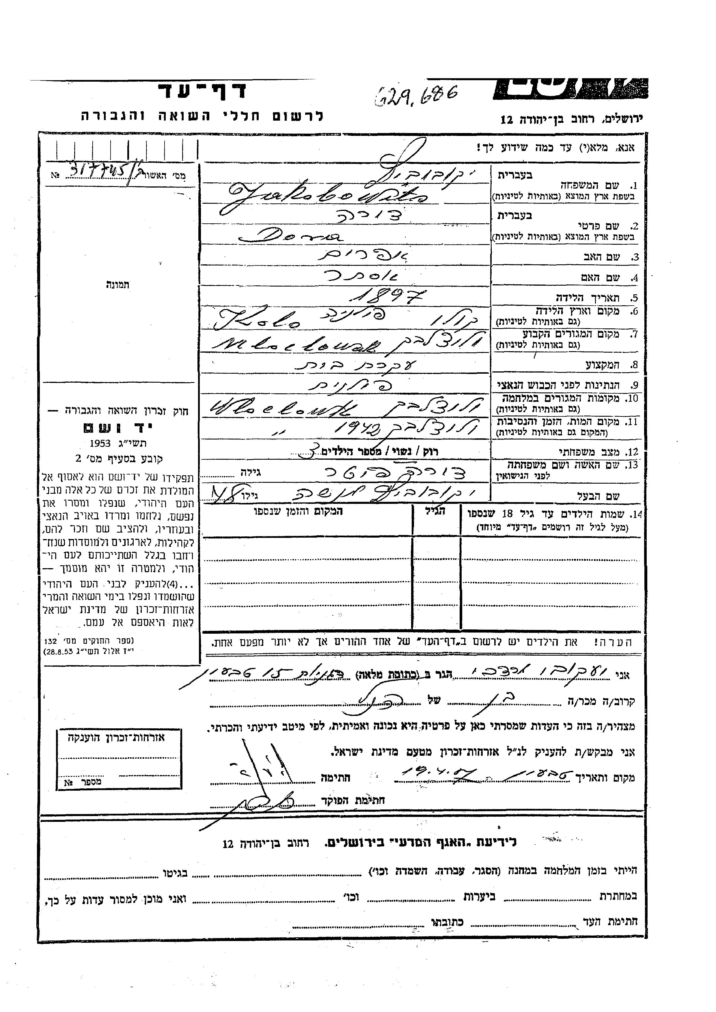 Dora Jakobowits, geb. Piter wurde im Jahr 1897 in Kolo, Polen geboren. Sie war die Tochter von Efraim und Ester. Sie war Hausfrau und mit Menashe Verheiratet. Vor dem Zweiten Weltkrieg lebte sie in Wloclawek, Polen. Während des Krieges war sie in Wloclawek, Polen.