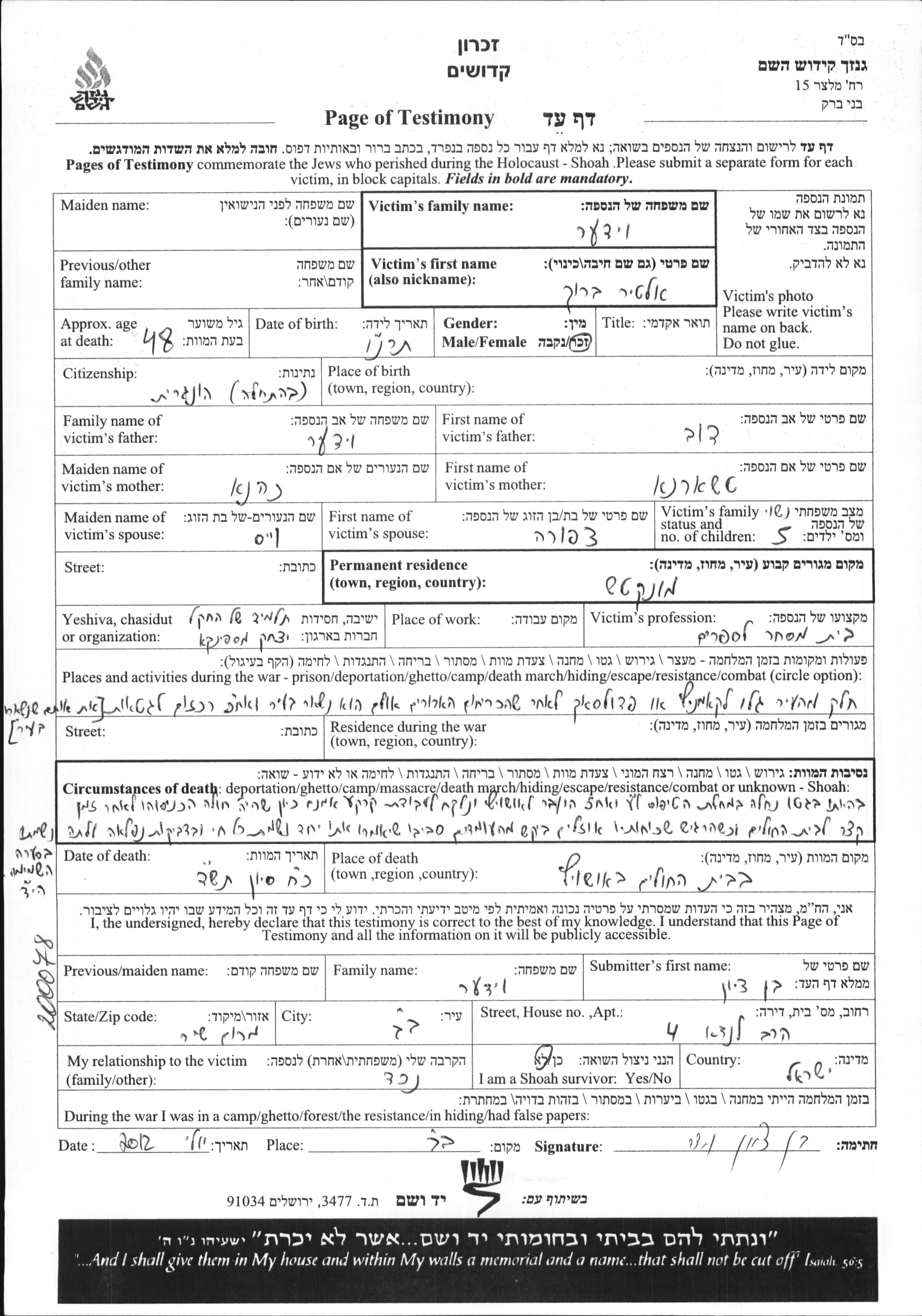 Vider Alter Baruch Munkacz, Tschechoslowakei Aufzeichnungen ueber ermordete Personen