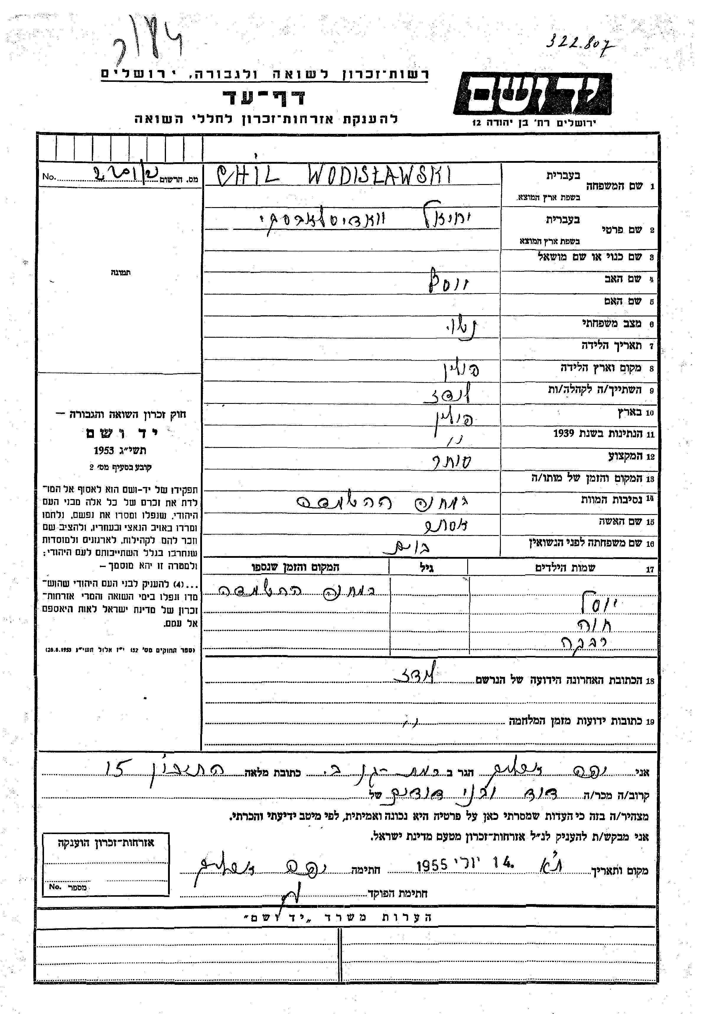 Wojdislawski Eva Khava Lodz, Polen Gedenkblatt