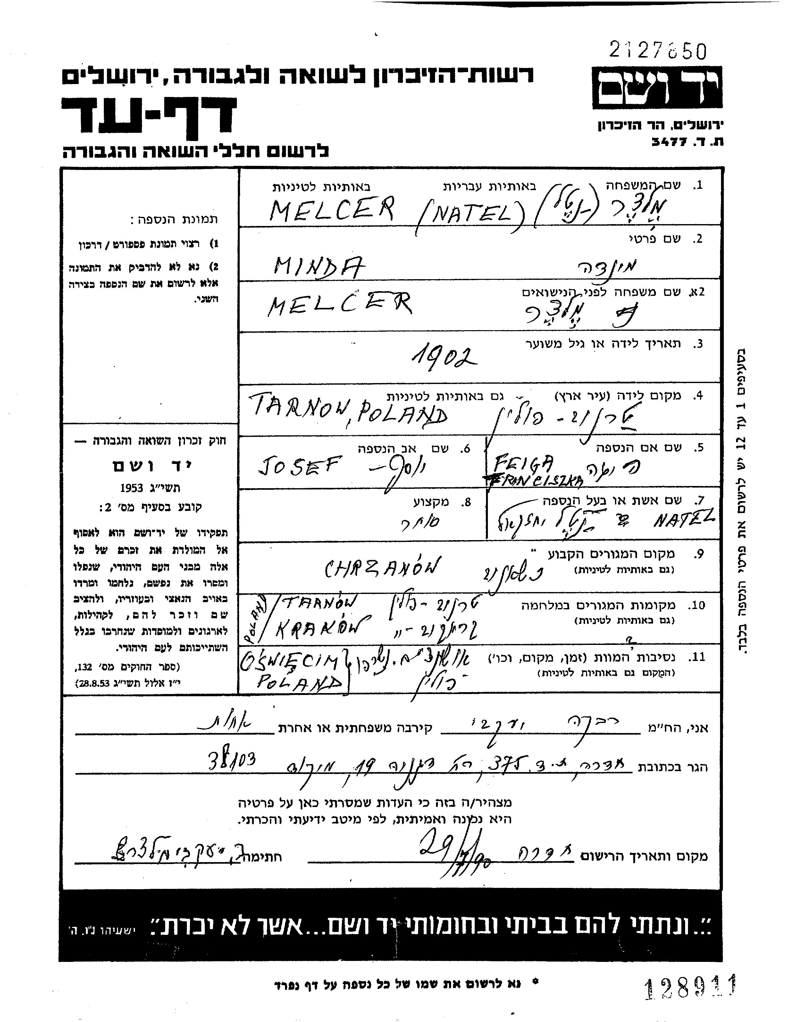 Melcer Natel Minda 1902 Chrzanow, Polen Gedenkblatt
