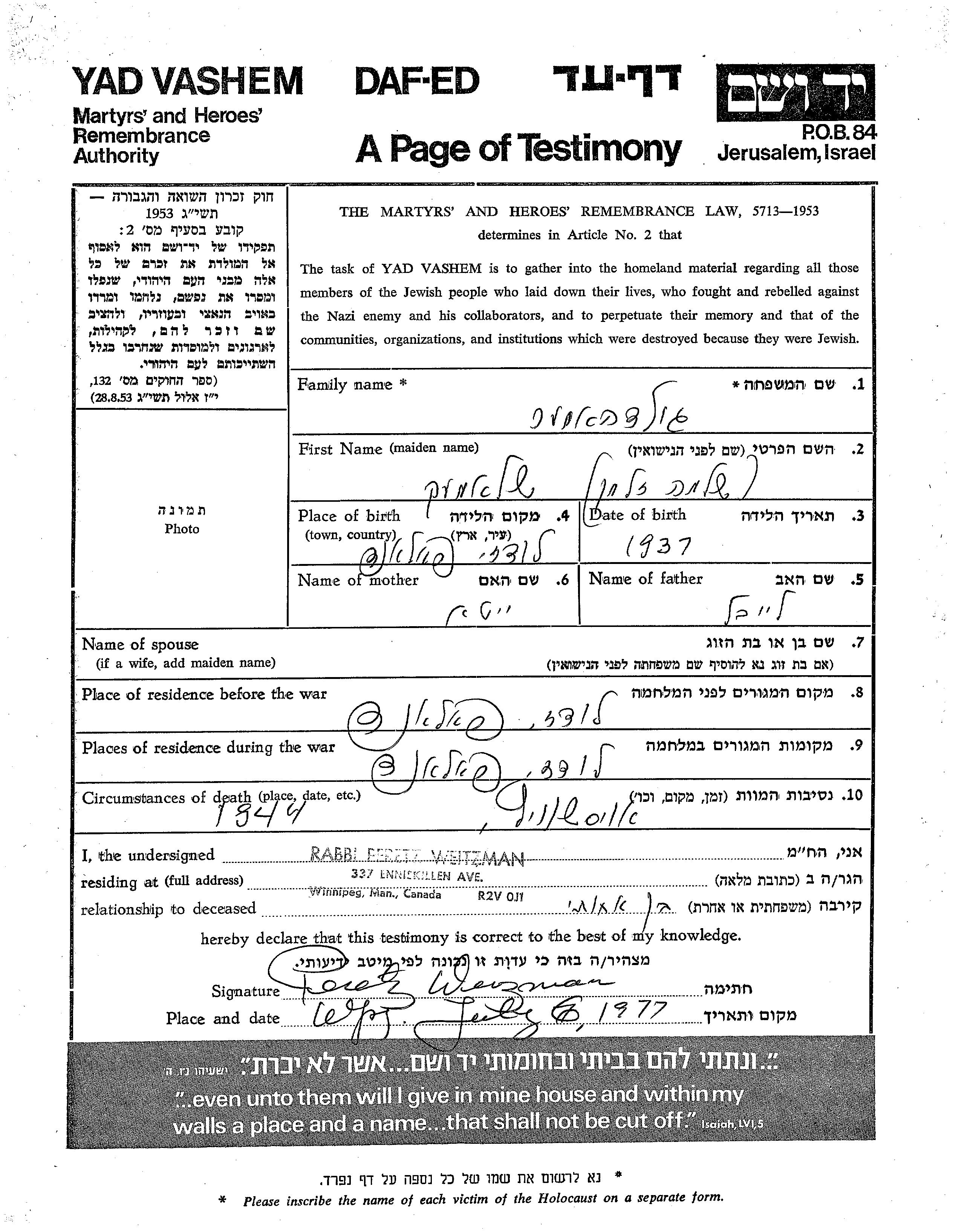 Shlomo Zalman wurde in der Schoah ermordet. Todesort: Auschwitz, Polen im Jahr 1944.
