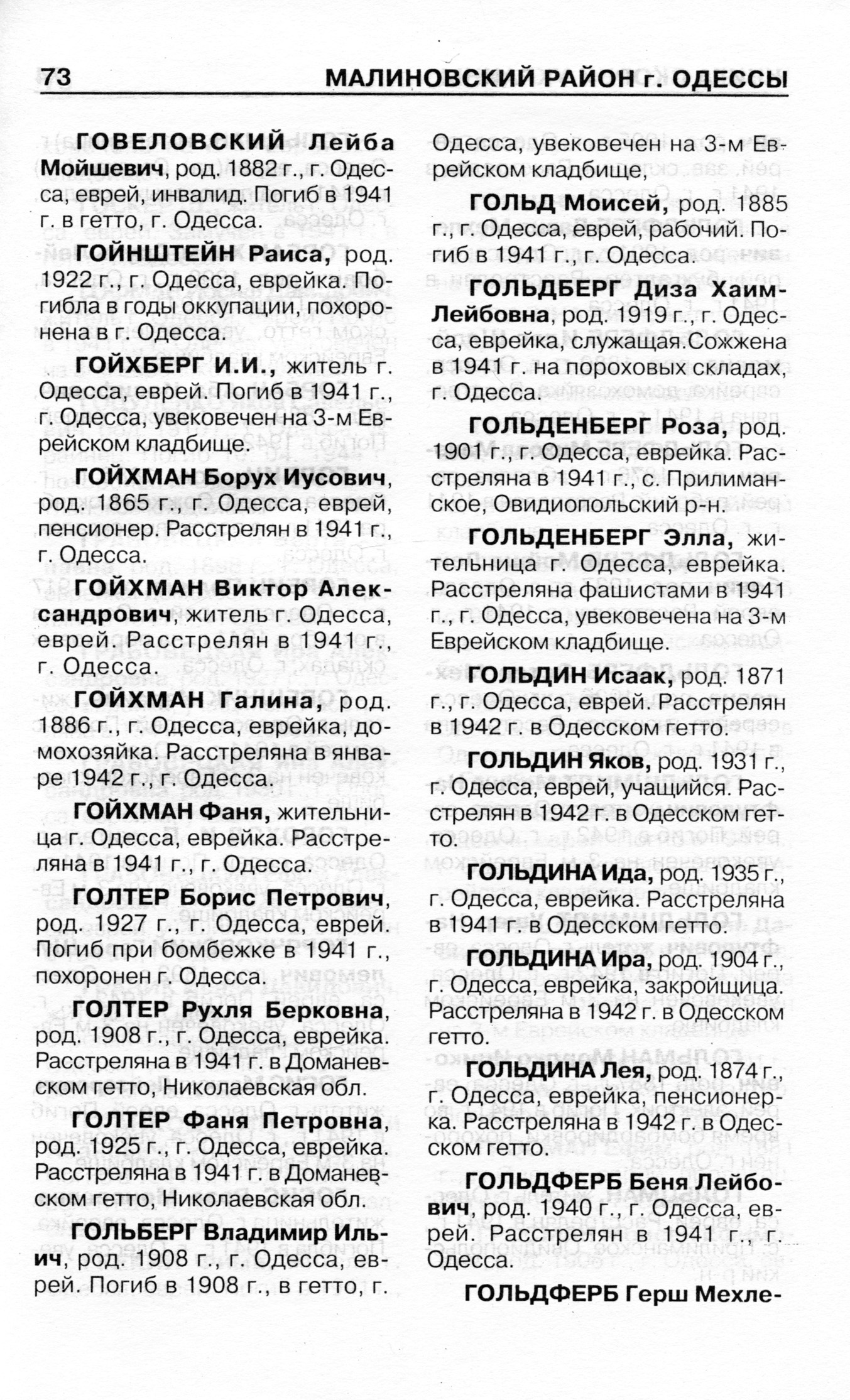 Goldferb | Benya | 1940 | Odessa, Ukraine (UdSSR) | Verfolgtenliste |