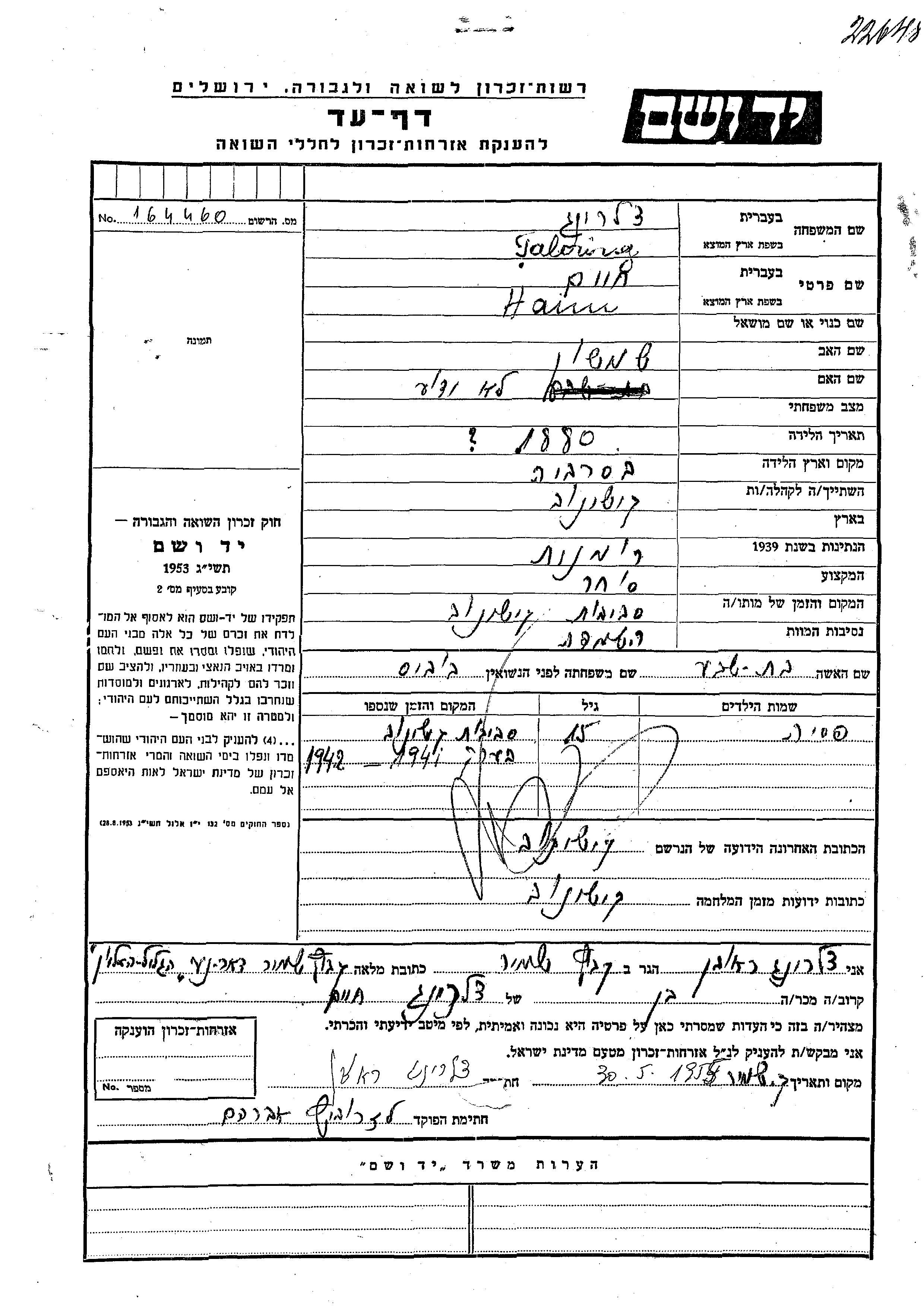 Pesia wurde in der Schoah ermordet. Todesort: Kishinev, Rumänien im Jahr 1941.