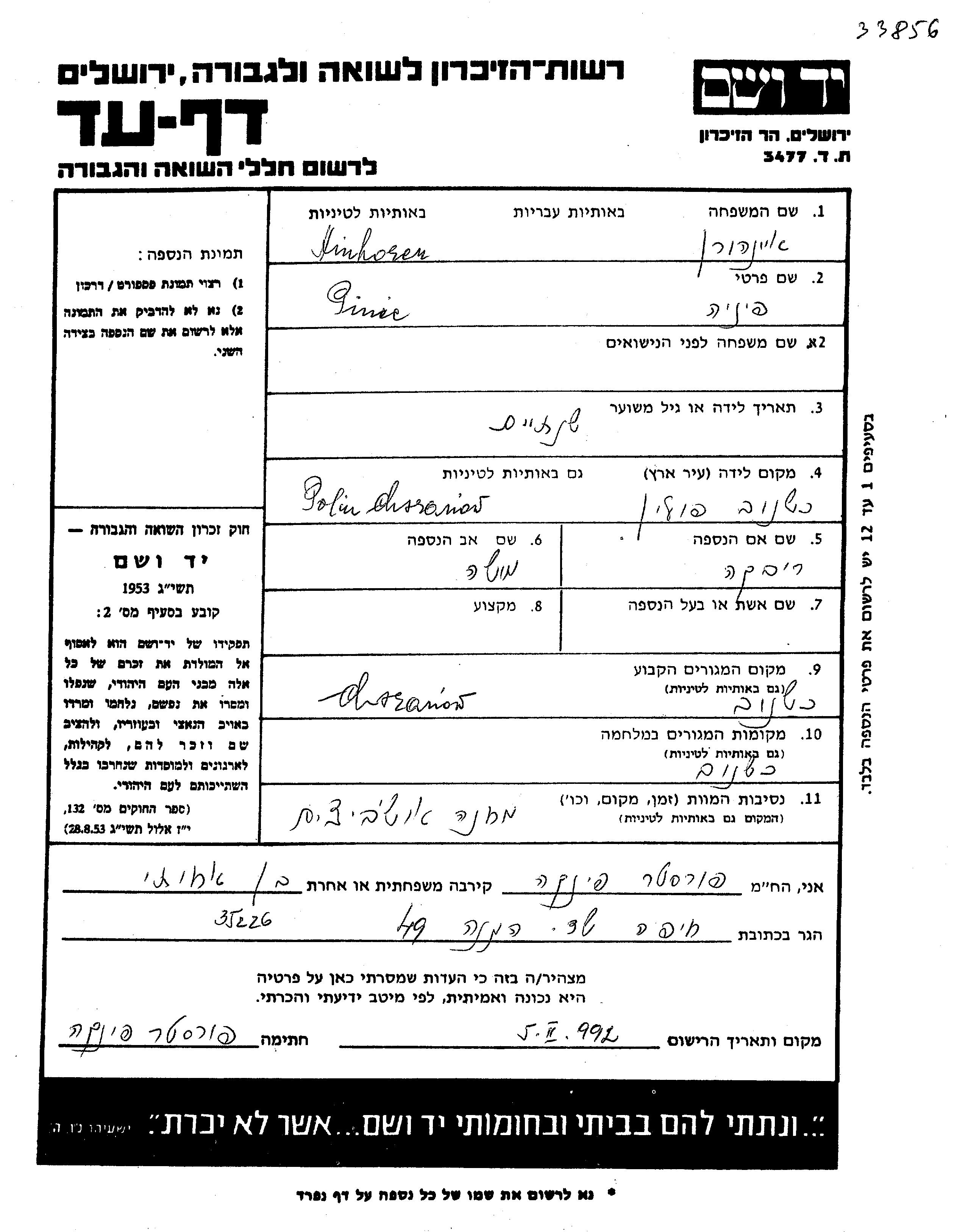 Pinie Pinkhas wurde in der Schoah ermordet. Todesort: Auschwitz, Polen.