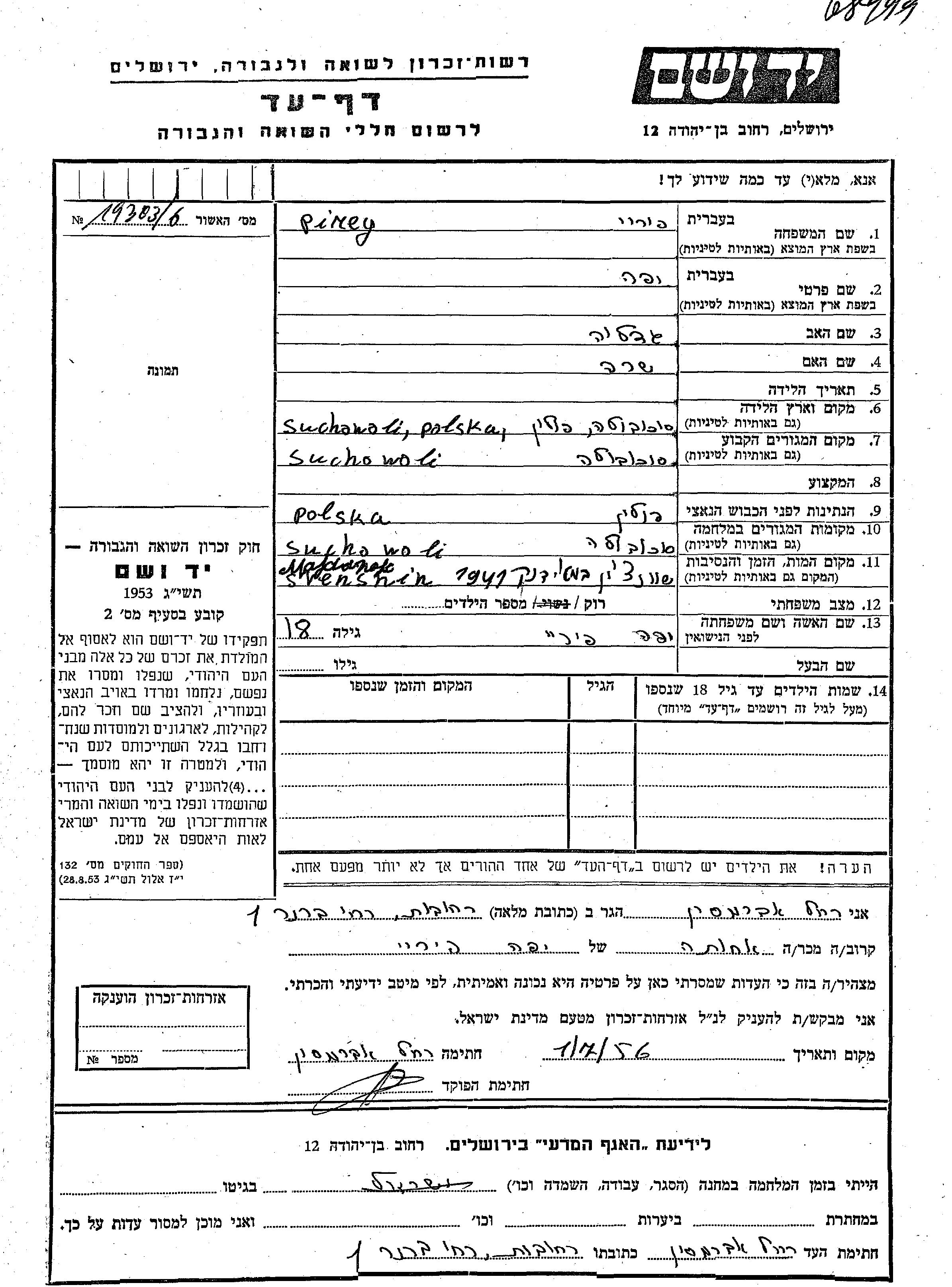 Yafa wurde in der Schoah ermordet. Todesort: Swieciany, Polen.