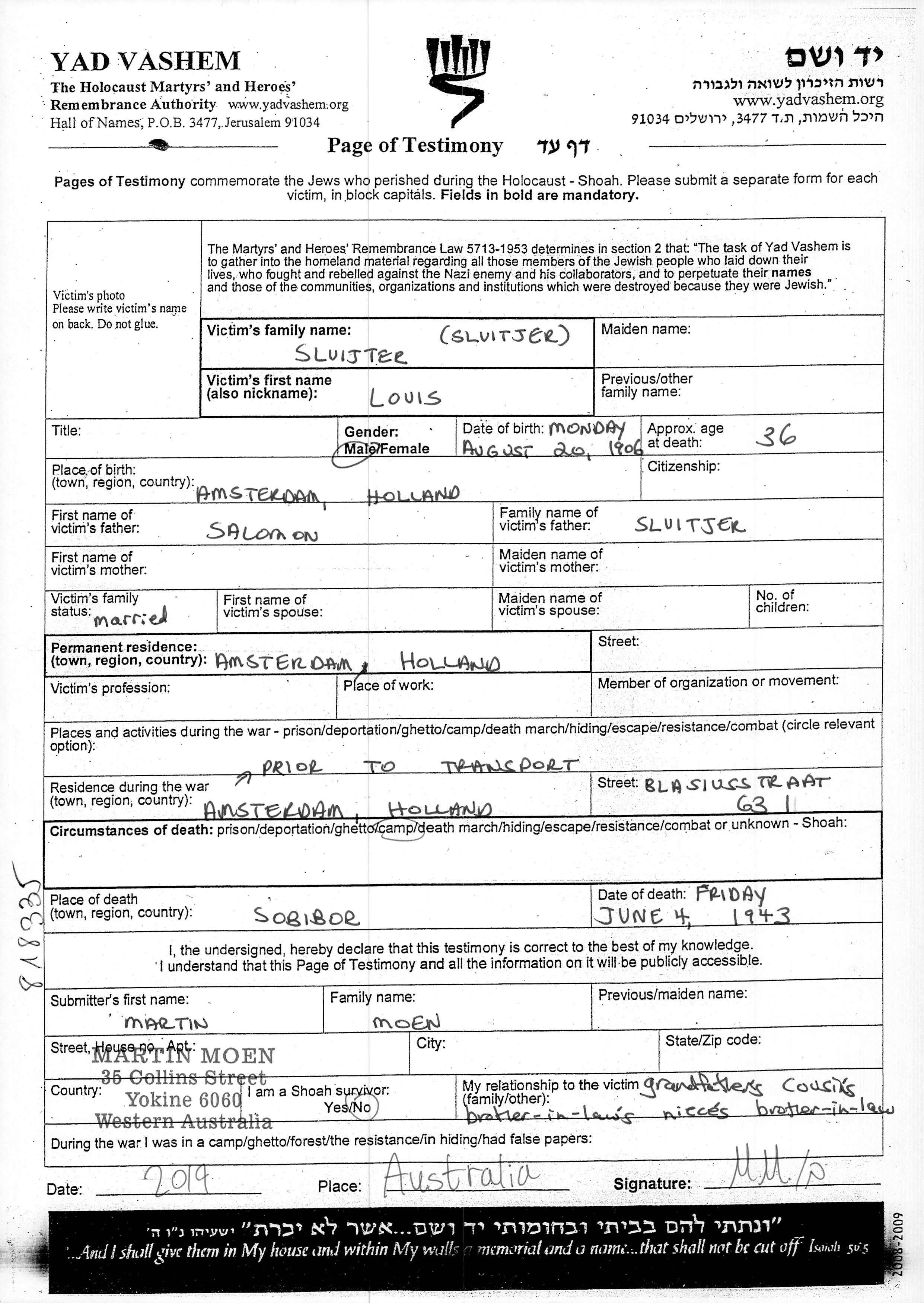 Sluijter Louis 1906 Amsterdam, Niederlande Liste von ermordeten Juden aus Holland