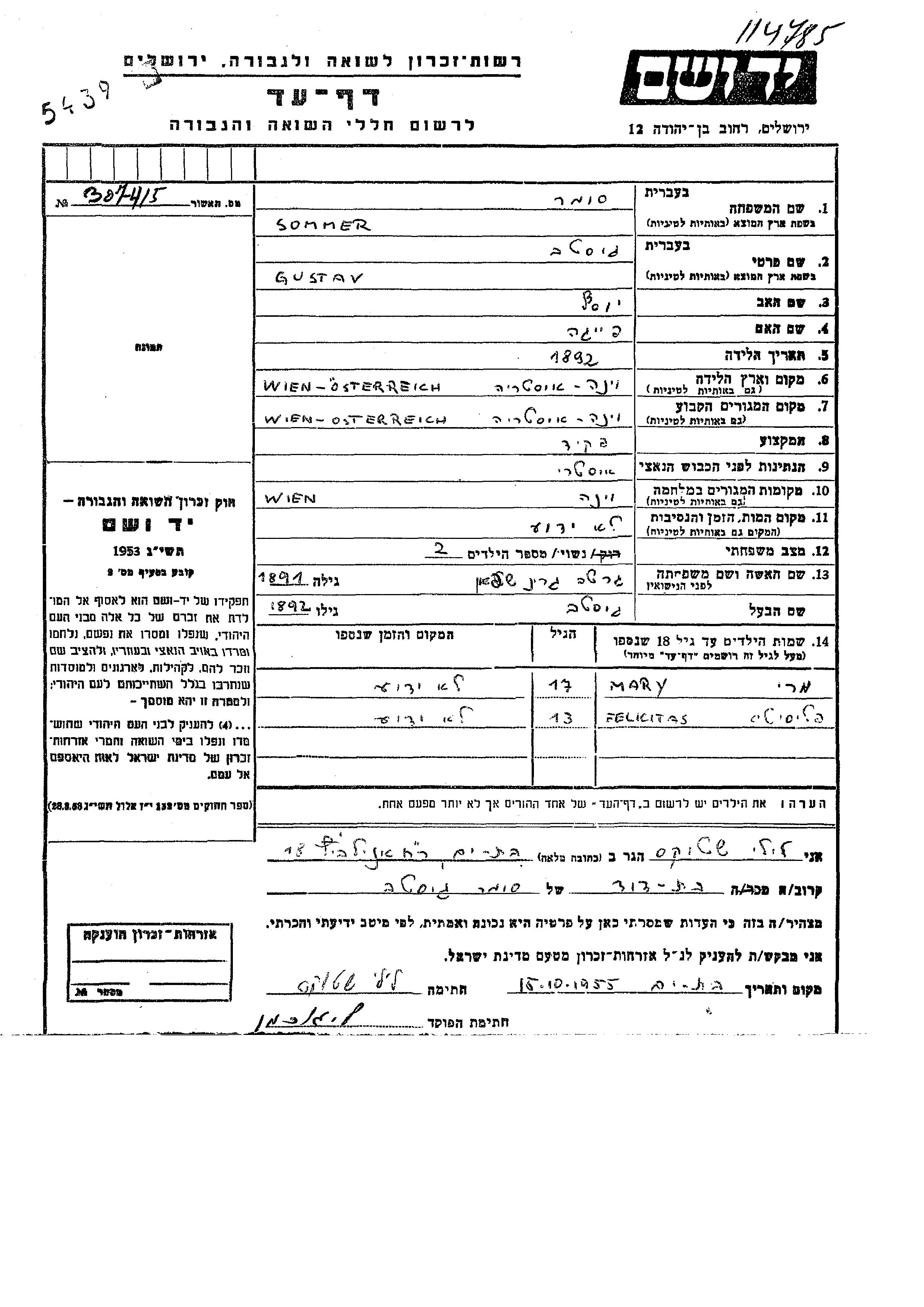 Sommer | Mary | Wien, Österreich | Gedenkblatt | |