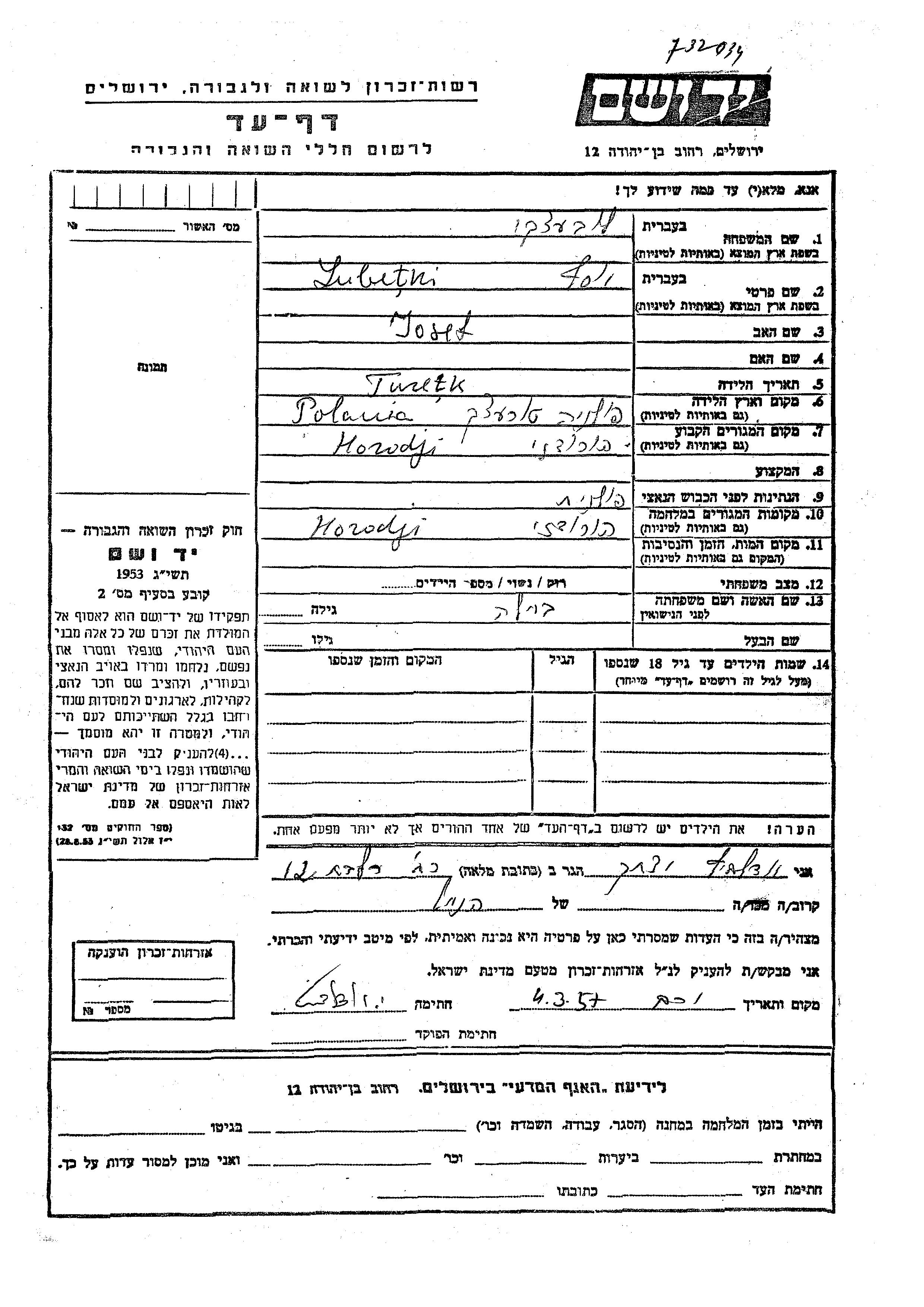 Josef Lubetki wurde in Turzec, Polen geboren. Er war mit Beila Verheiratet. Vor dem Zweiten Weltkrieg lebte er in Horodzej, Polen. Während des Krieges war er in Horodzej, Polen.