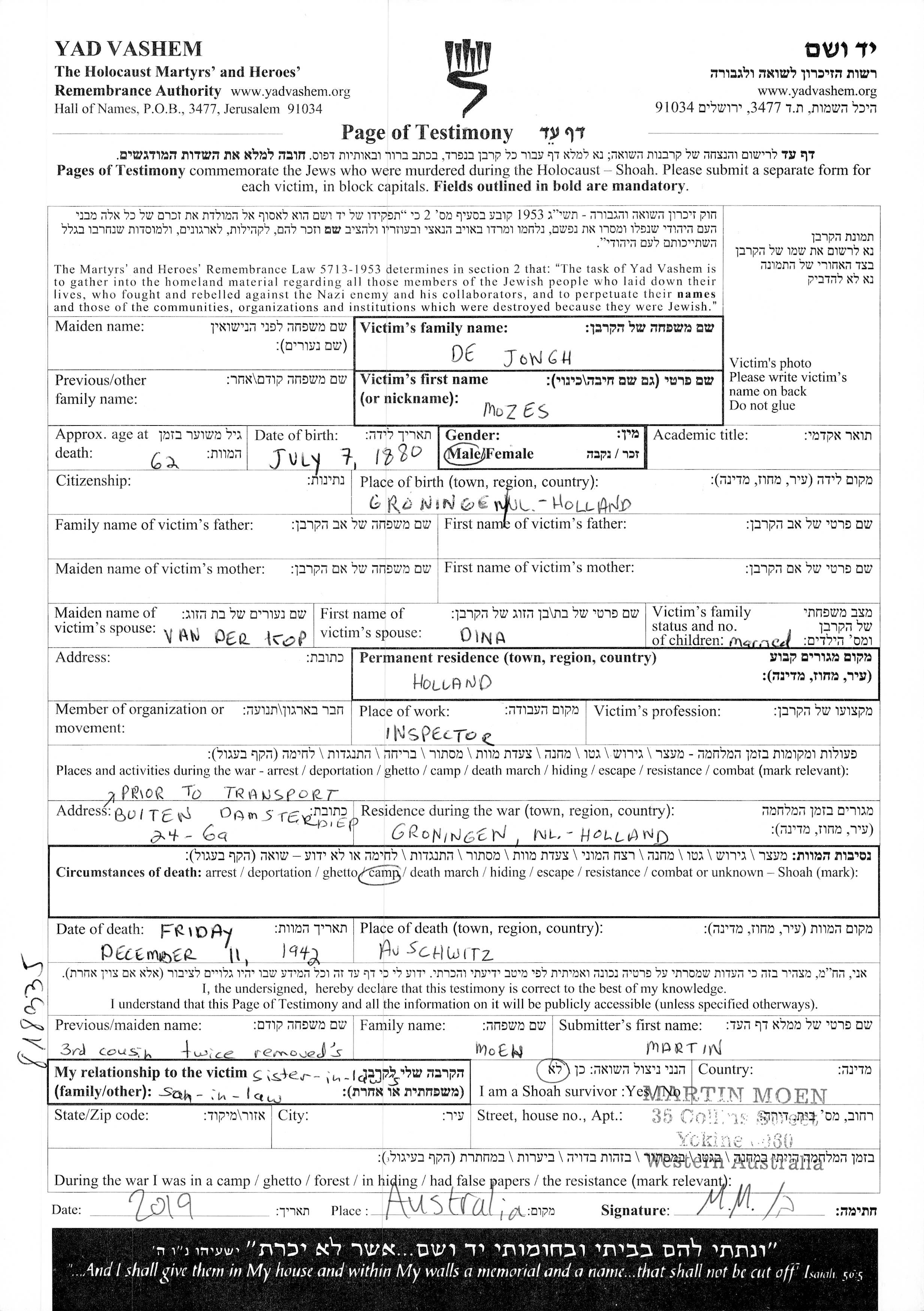 Jongh de | Moshe | 1880 | Groningen, Niederlande | Liste von ermordeten Juden aus Holland |
