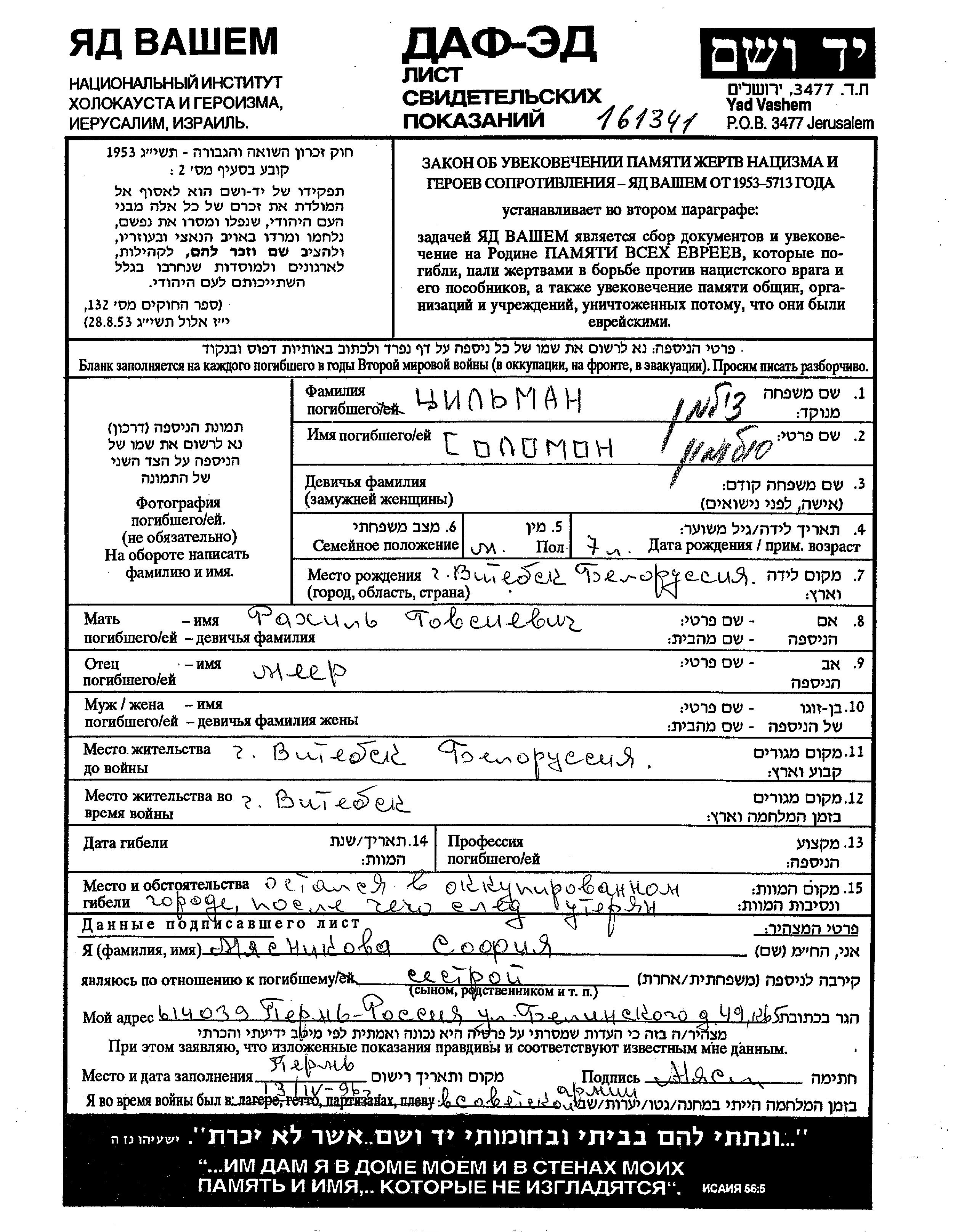 Tzilman Solomon Vitebsk, Weißrussland (UdSSR) Gedenkblatt
