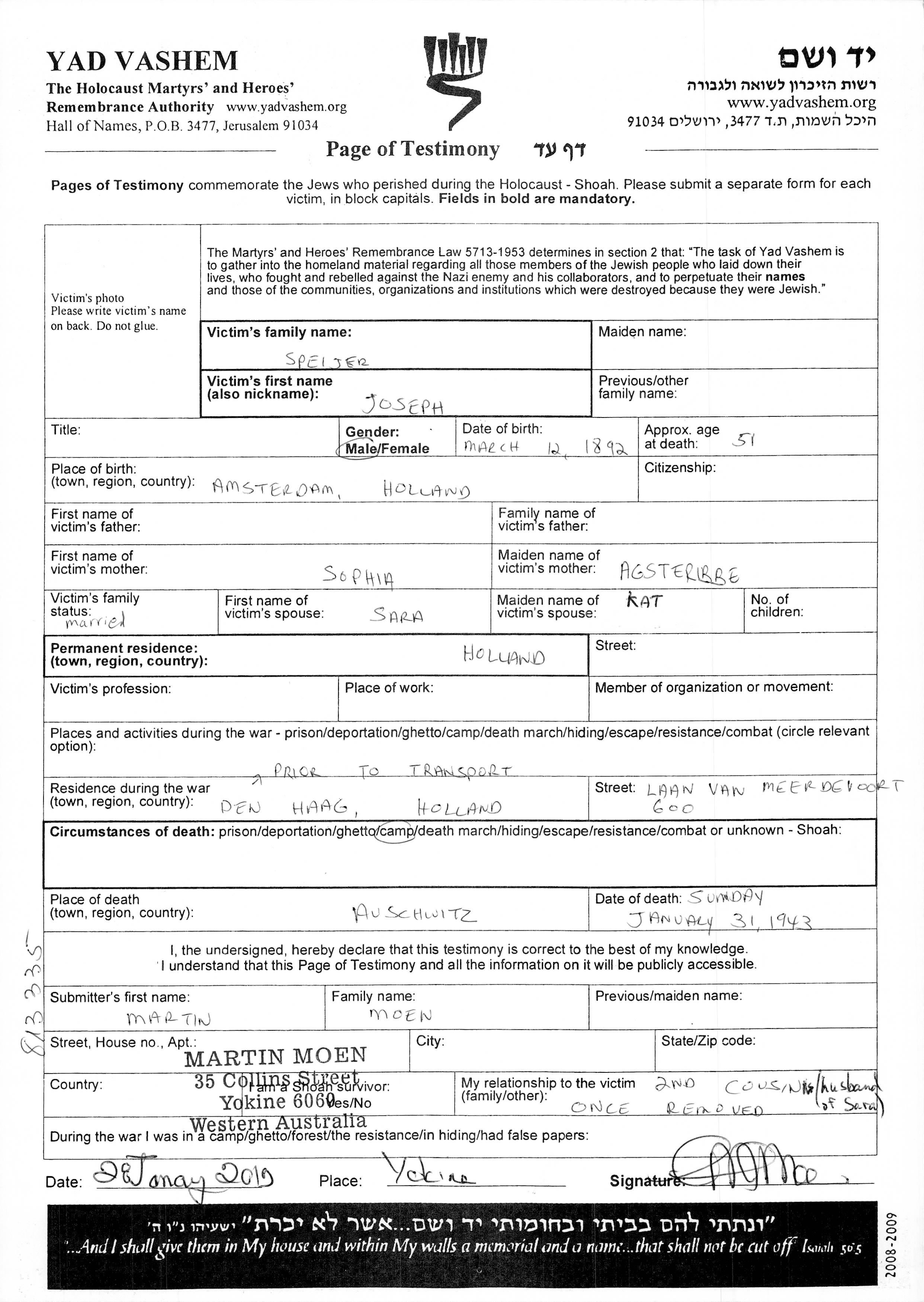 Speijer Joseph 1892 Amsterdam, Niederlande Liste von ermordeten Juden aus Holland