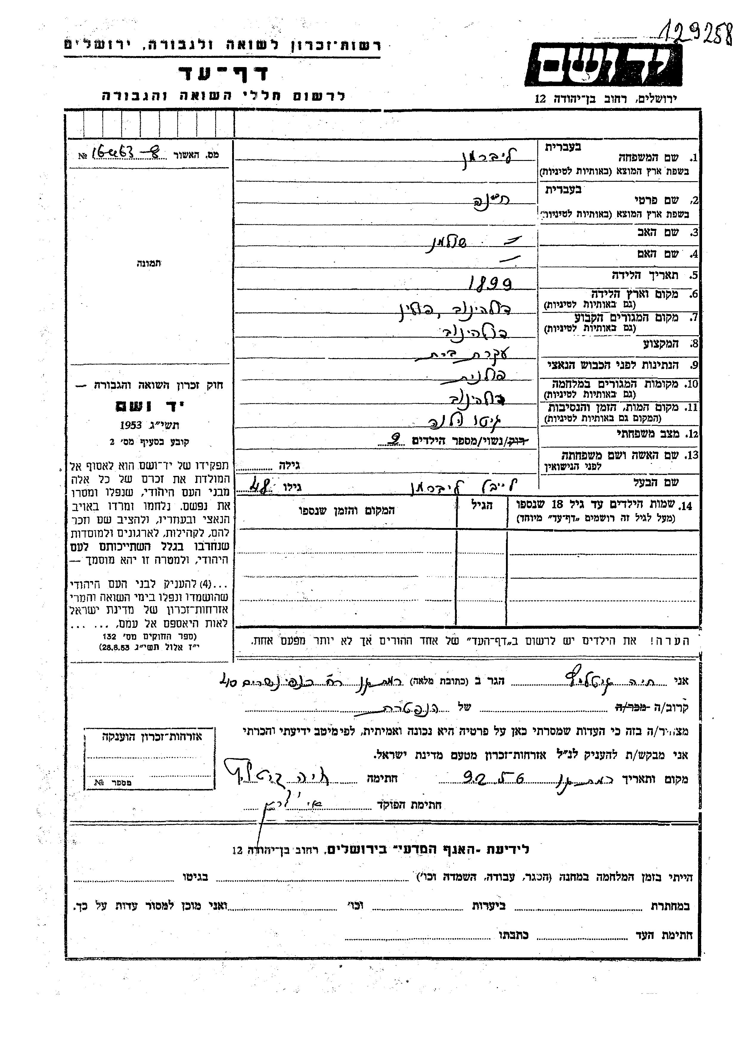 Khina Liberman wurde im Jahr 1899 in Dolhinow, Polen geboren. Sie war Hausfrau und mit Leibel Verheiratet. Vor dem Zweiten Weltkrieg lebte sie in Dolhinow, Polen. Während des Krieges war sie in Dolhinow, Polen.