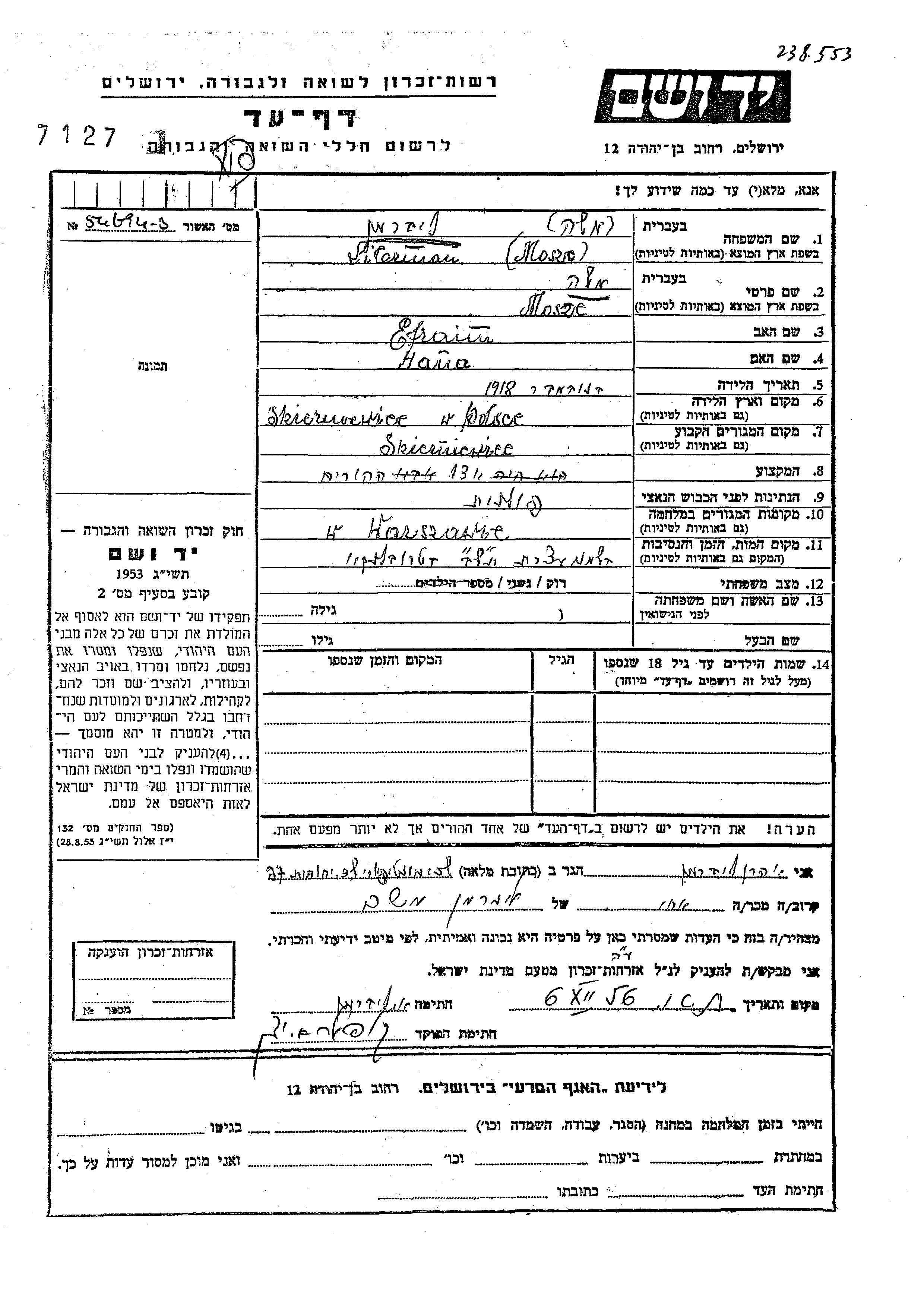 Mosze wurde in der Schoah ermordet. Todesort: Treblinka, Polen.