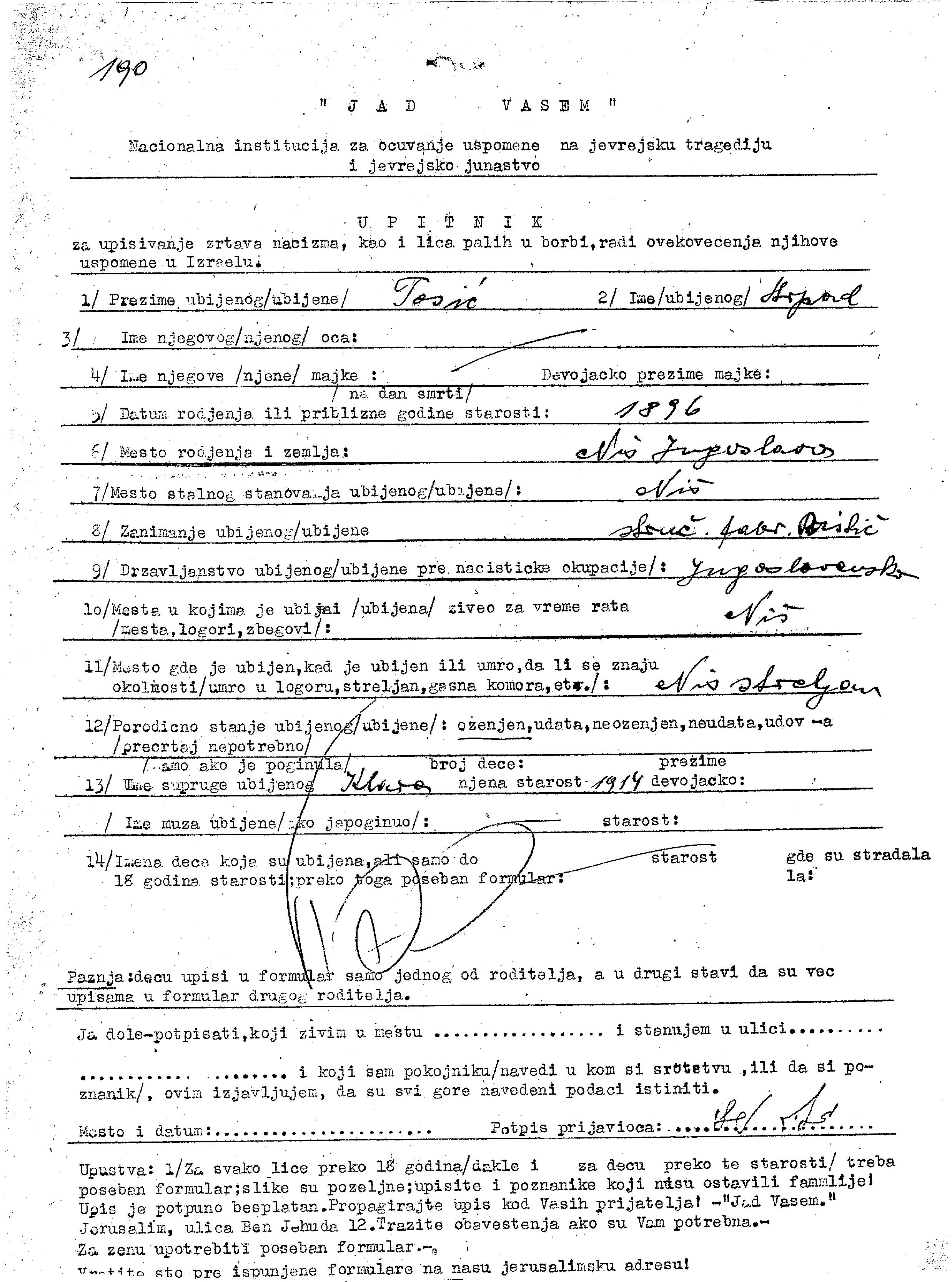 Hipad wurde in der Schoah ermordet. Todesort: Nis, Jugoslawien.