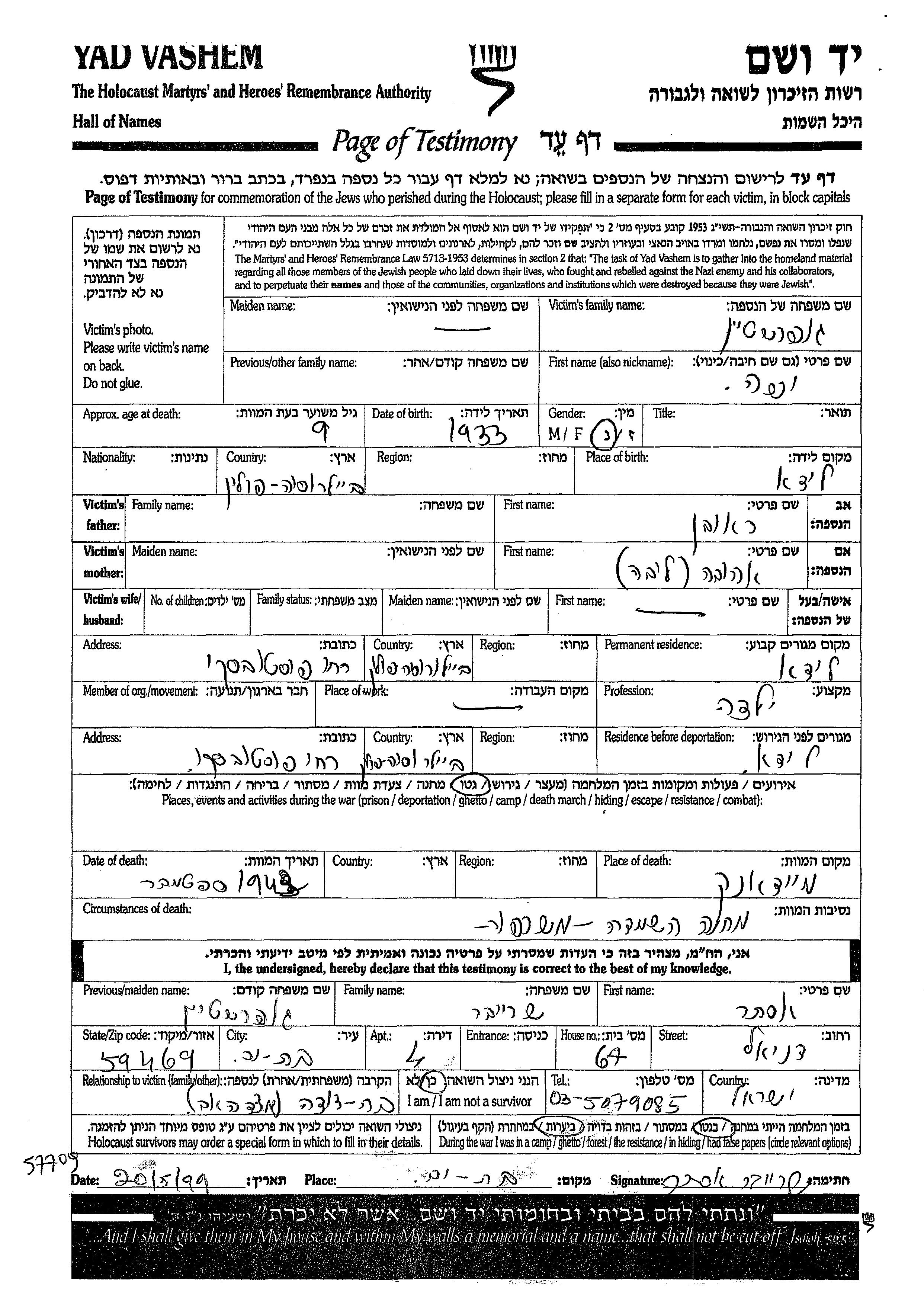 Sheina Yafa wurde in der Schoah ermordet. Todesort: Majdanek, Polen im Jahr 09/1943.