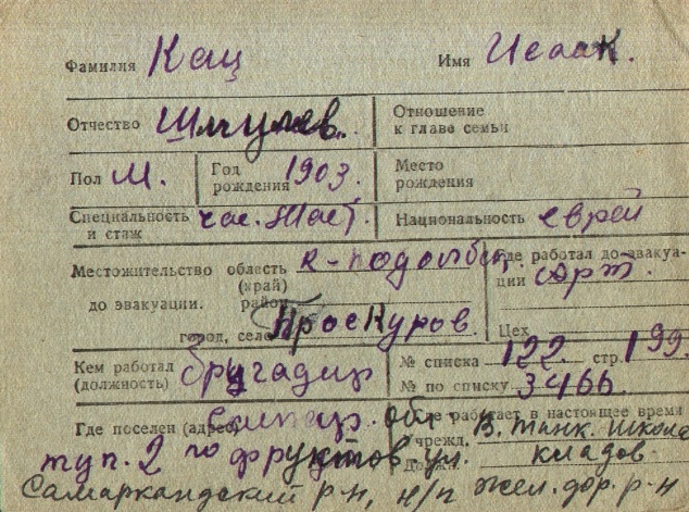 Isaak wurde nach der Evakuierung/ ins Innere der Sowjetunion registriert.