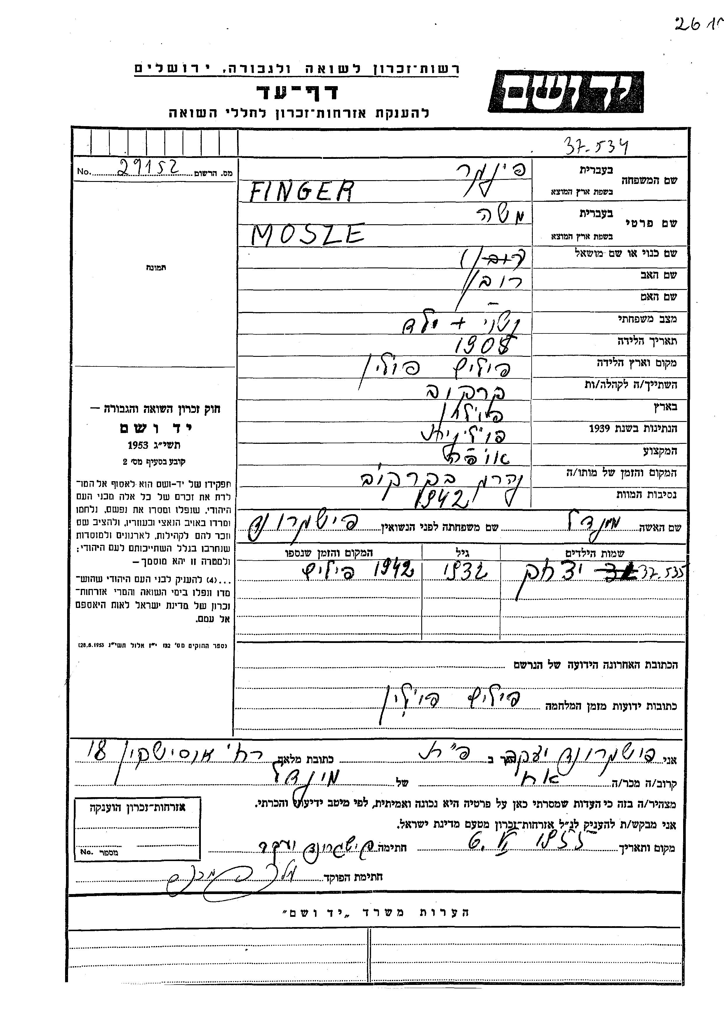 Yitzkhak Finger wurde im Jahr 1932 geboren. Vor dem Zweiten Weltkrieg lebte er in Krakow, Polen.