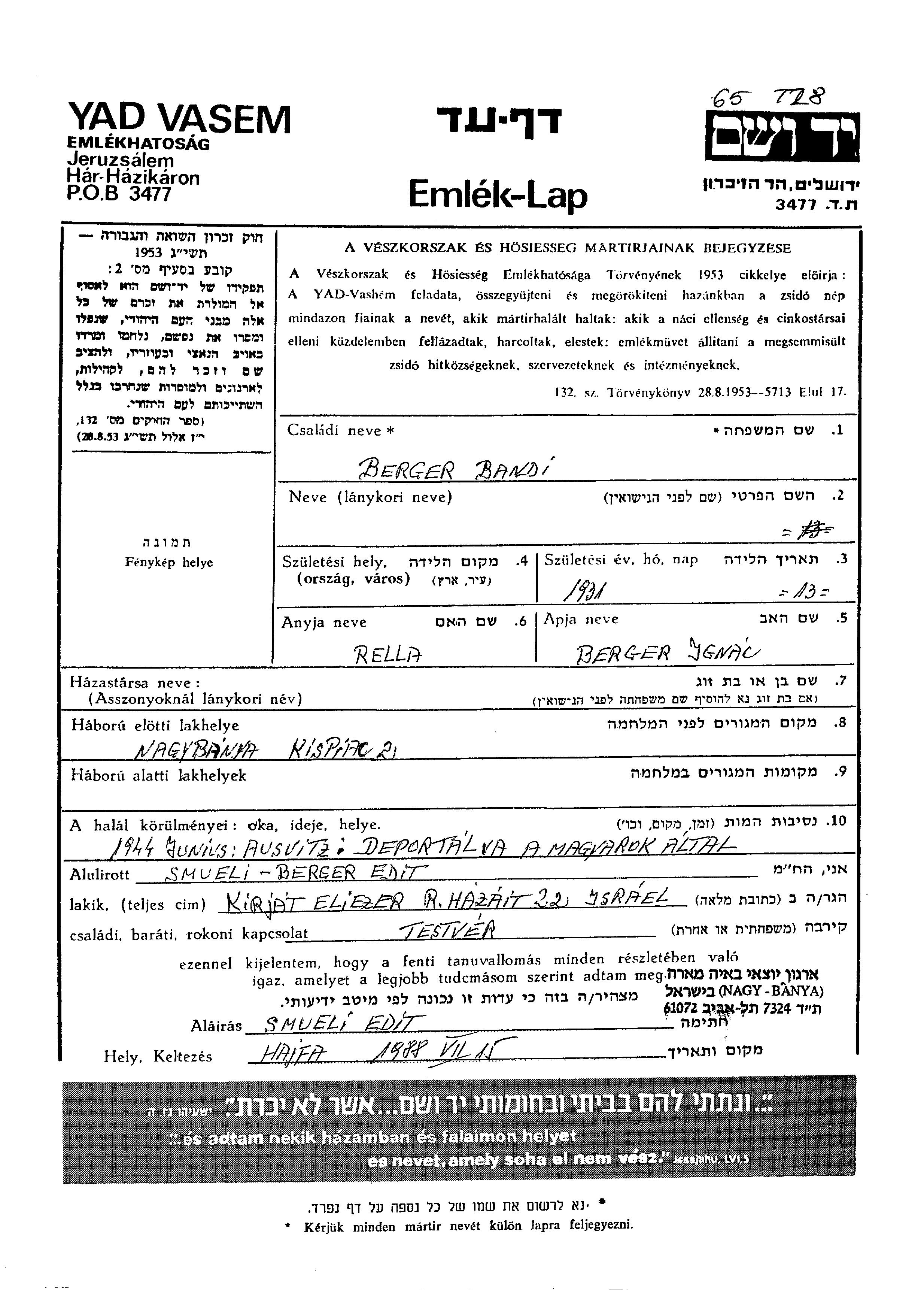 Andree Bandi Berger wurde im Jahr 1931 in Ungarn geboren. Vor dem Zweiten Weltkrieg lebte er in Nagybánya, Rumänien.