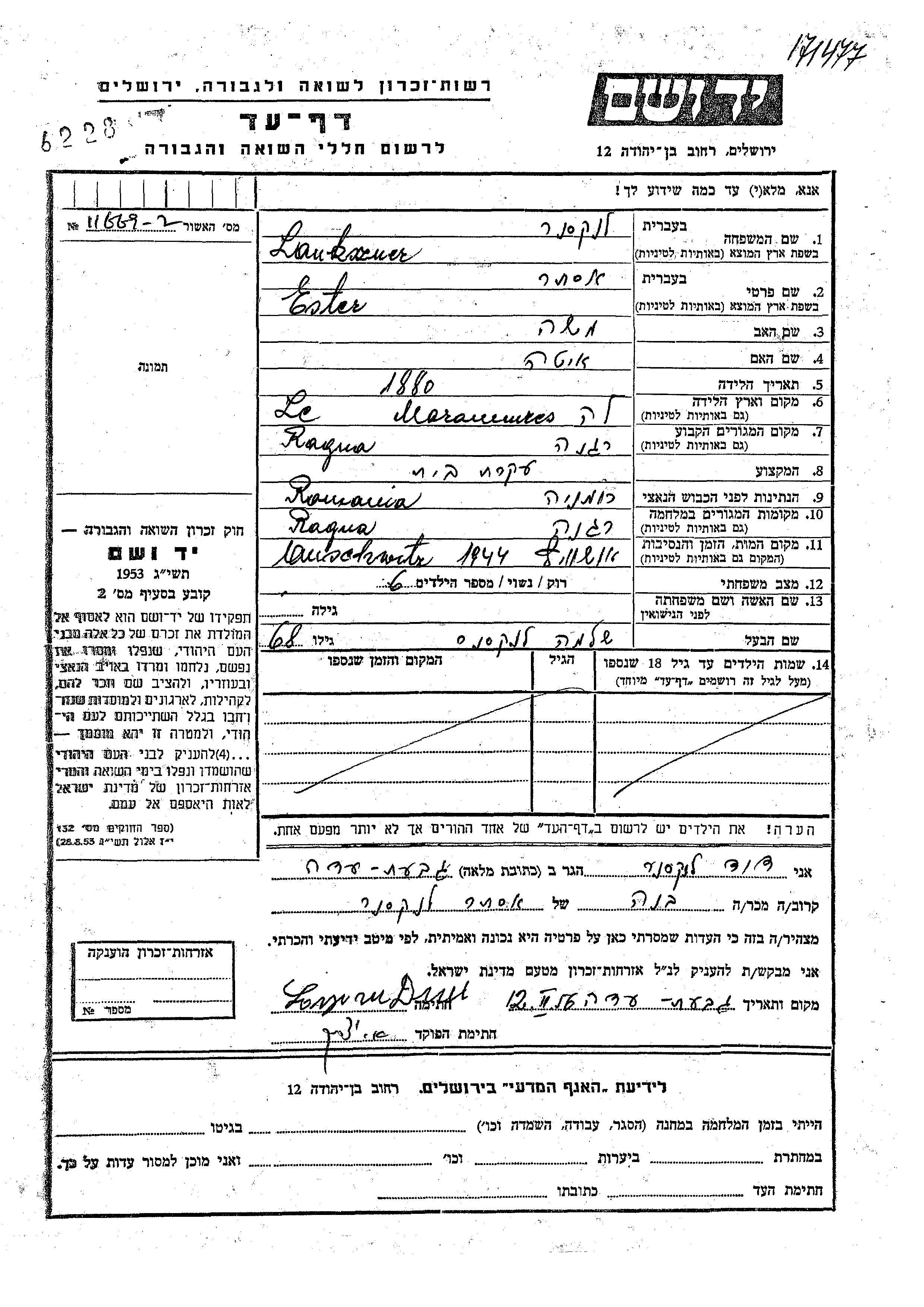Ester Lankszner wurde im Jahr 1880 in Maramures, Rumänien geboren. Sie war die Tochter von Moshe und Ita. Sie war Hausfrau und mit Shlomo Verheiratet. Vor dem Zweiten Weltkrieg lebte sie in Ragne, Rumänien. Während des Krieges war sie in Ragne, Rumänien.