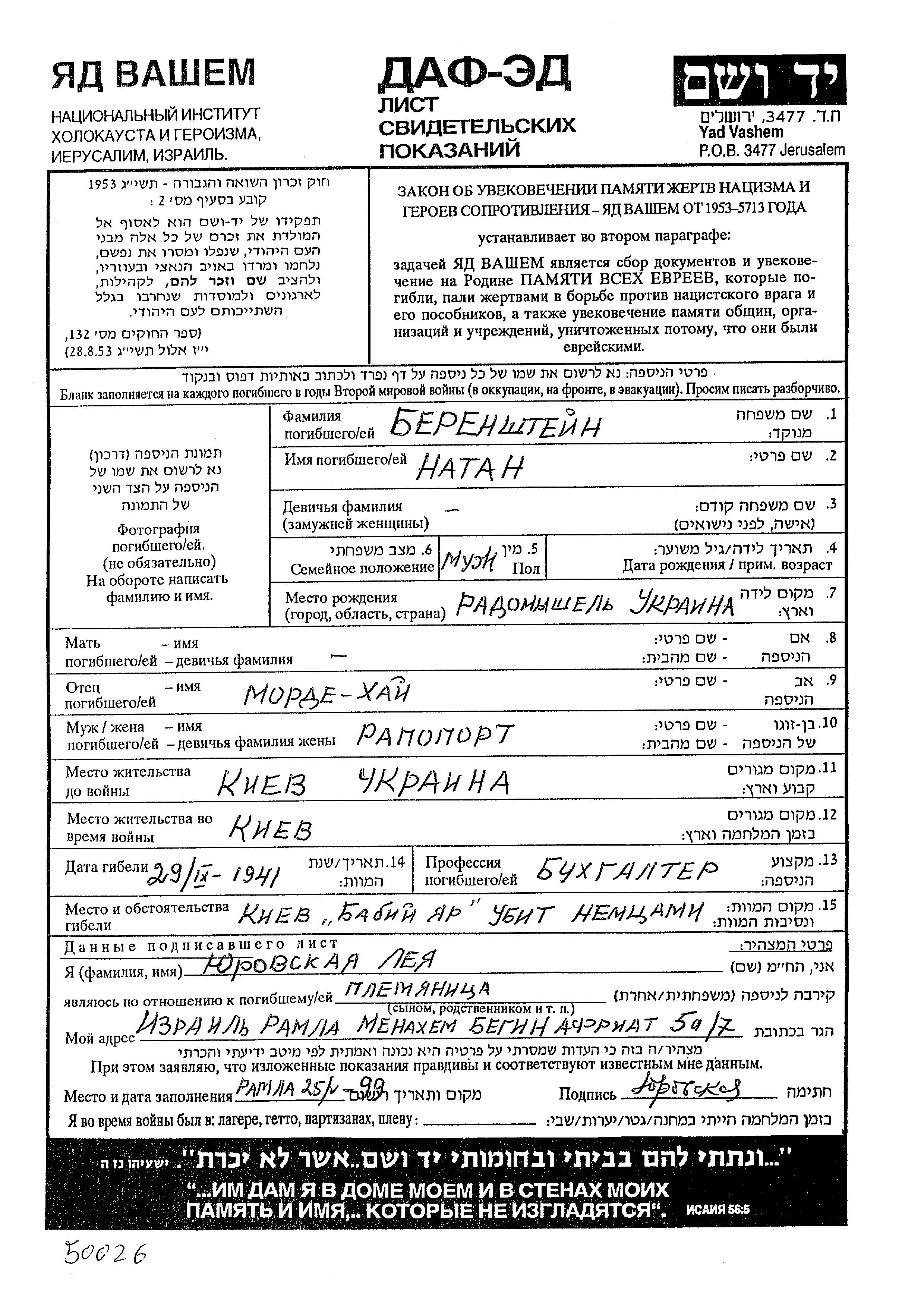 Bernshteyn Natan Kiev, Ukraine (UdSSR) Liste von ermordeten Personen