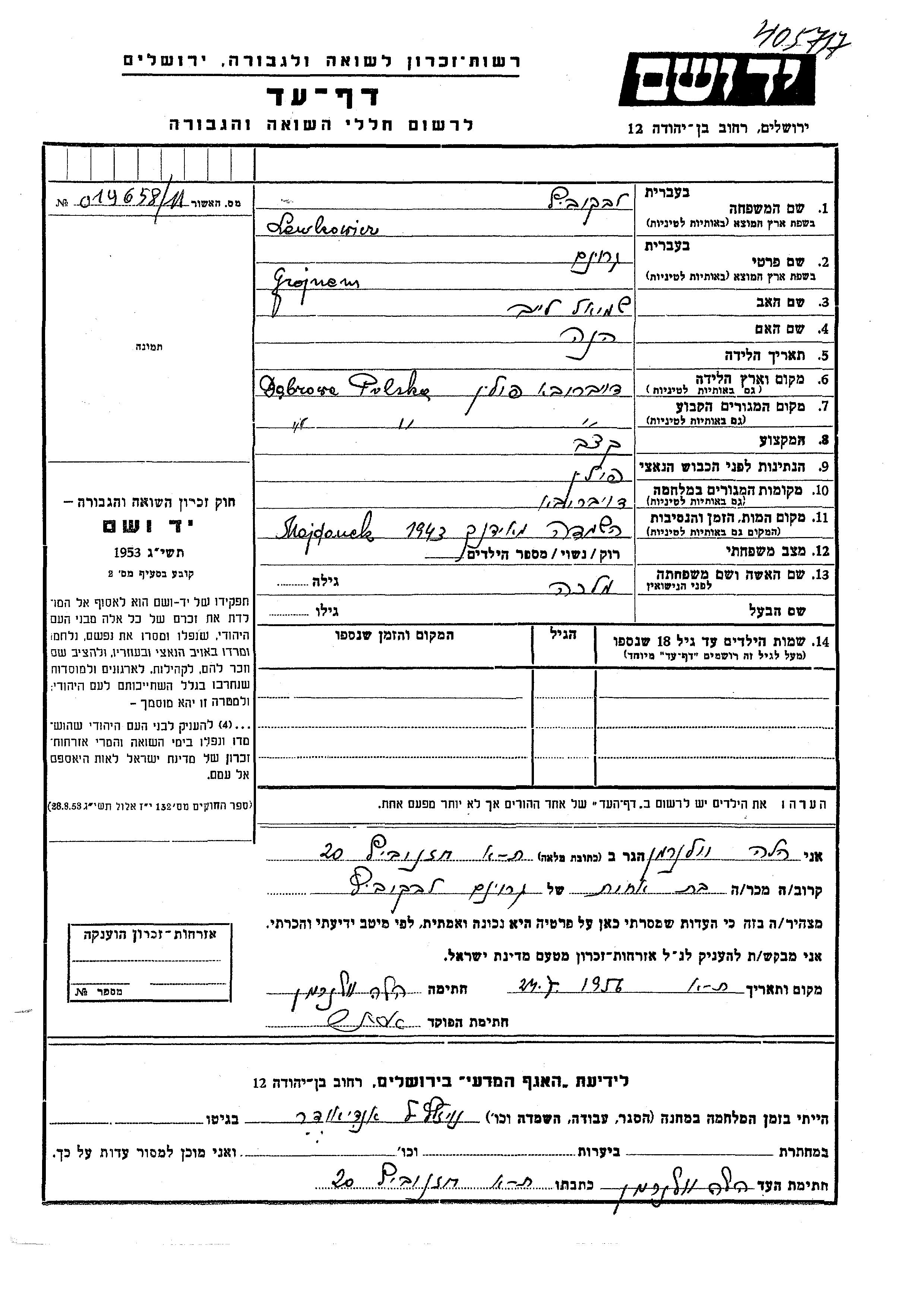 Grojnem wurde in der Schoah ermordet. Todesort: Majdanek, Polen im Jahr 1943.