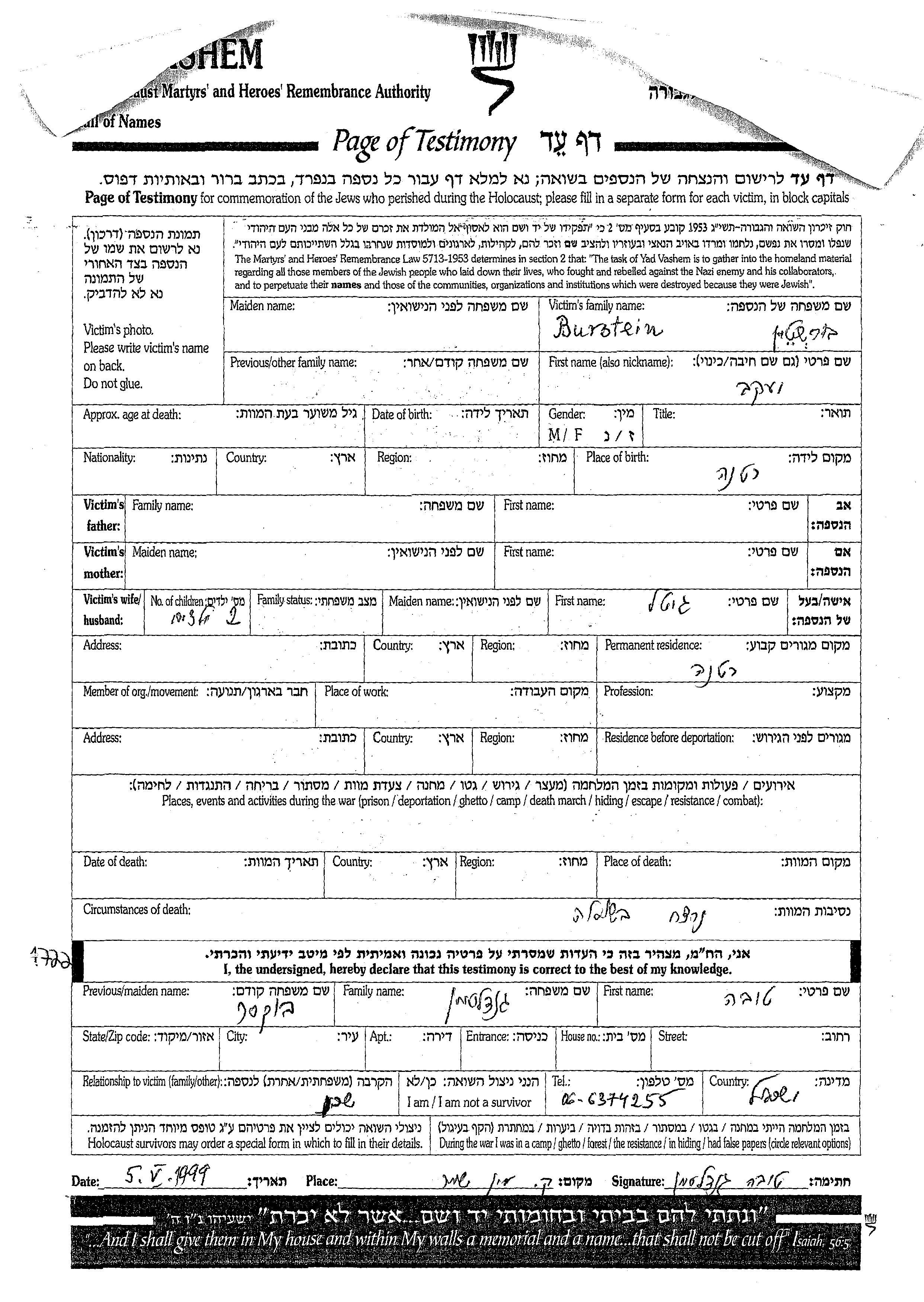 Burshtein Yaakov Ratna, Polen Gedenkblatt