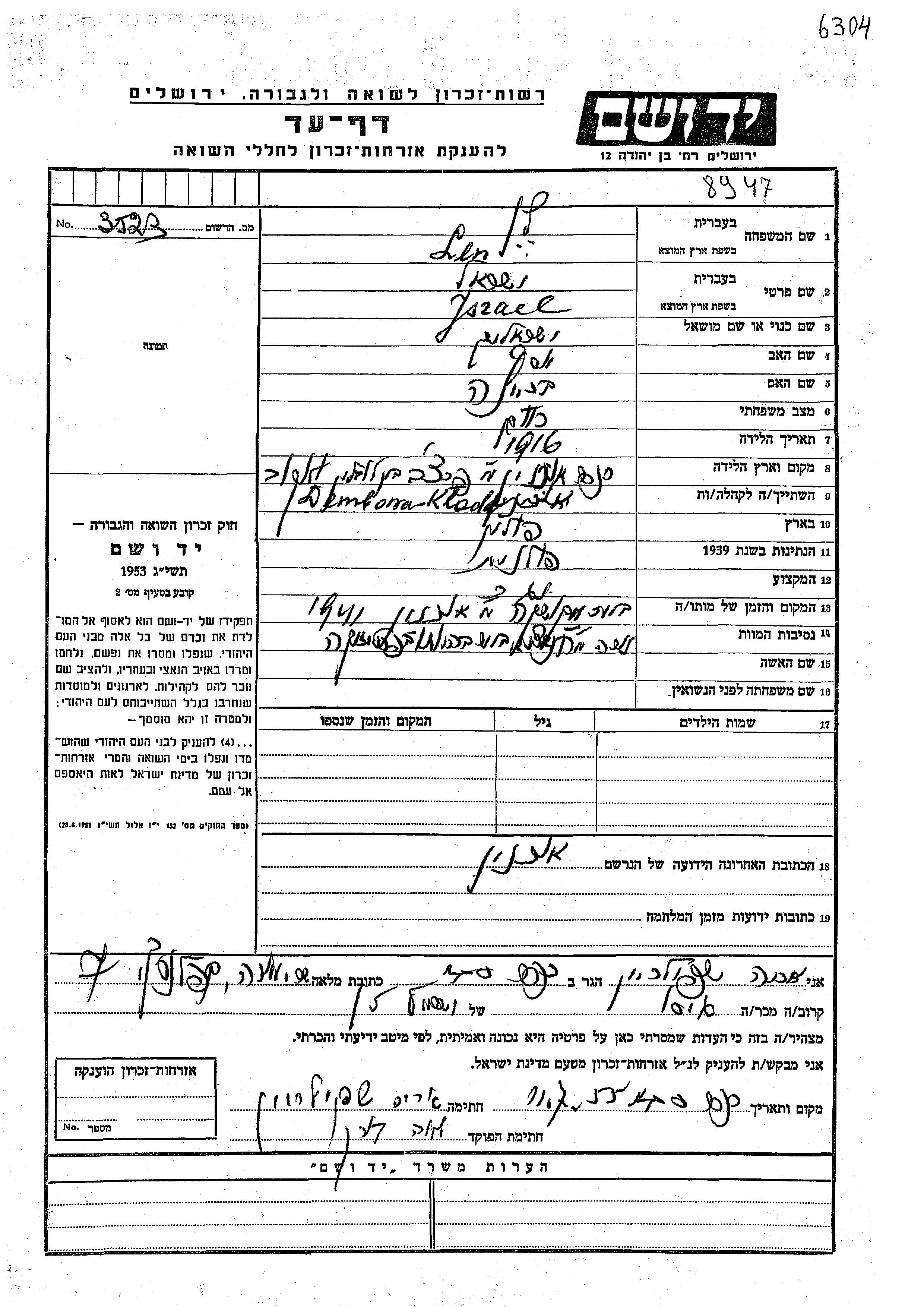 Israel wurde in der Schoah ermordet. Todesort: Makoszka, Polen im Jahr 1941.