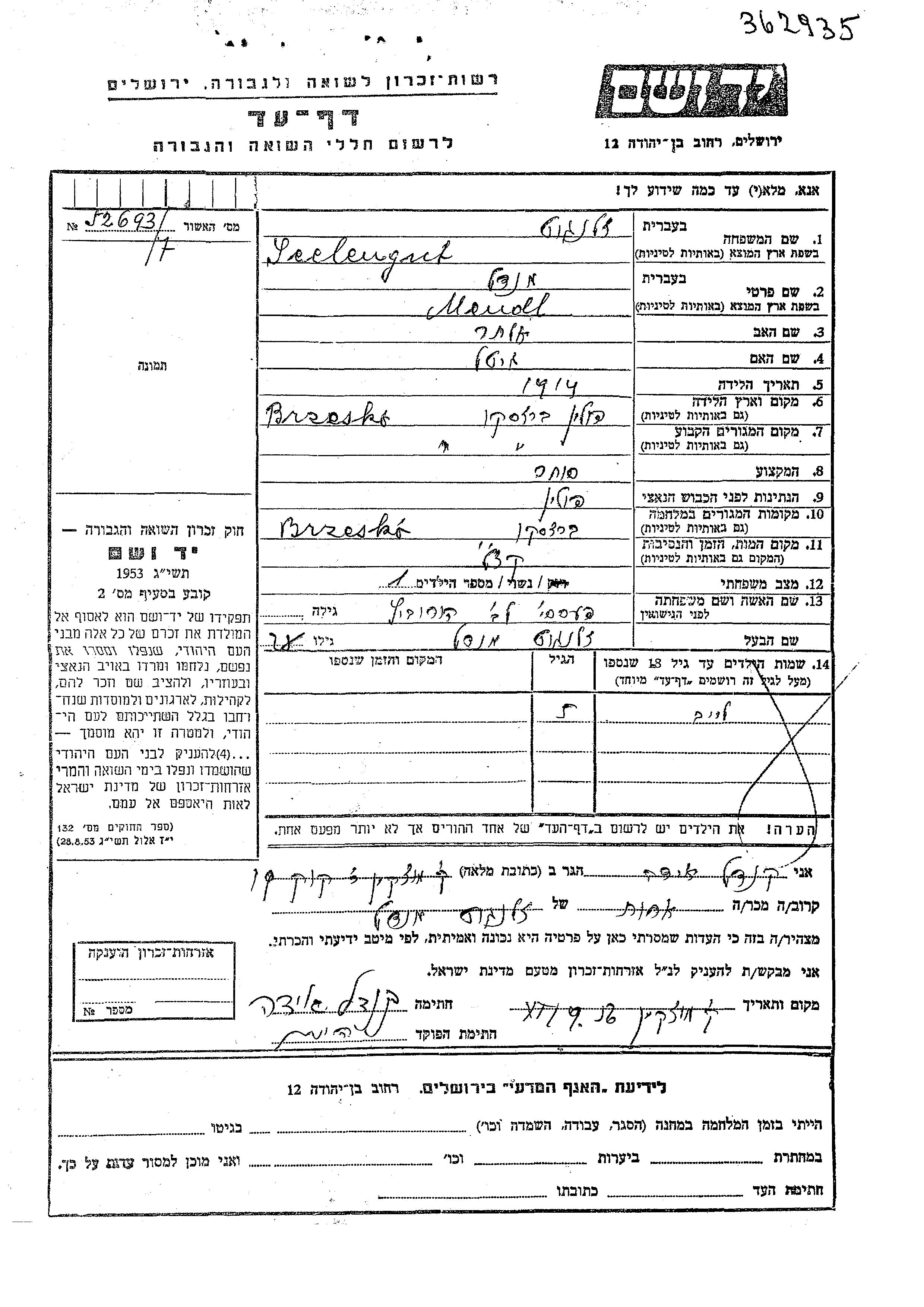 Mendel Seelengut wurde im Jahr 1914 in Brzesko, Polen geboren. Er war der Sohn von Alter und Itel. Er war Kaufmann/-frau und mit Pesa, geb. Hurvitz Verheiratet. Vor dem Zweiten Weltkrieg lebte er in Brzesko, Polen. Während des Krieges war er in Brzesko, Polen.