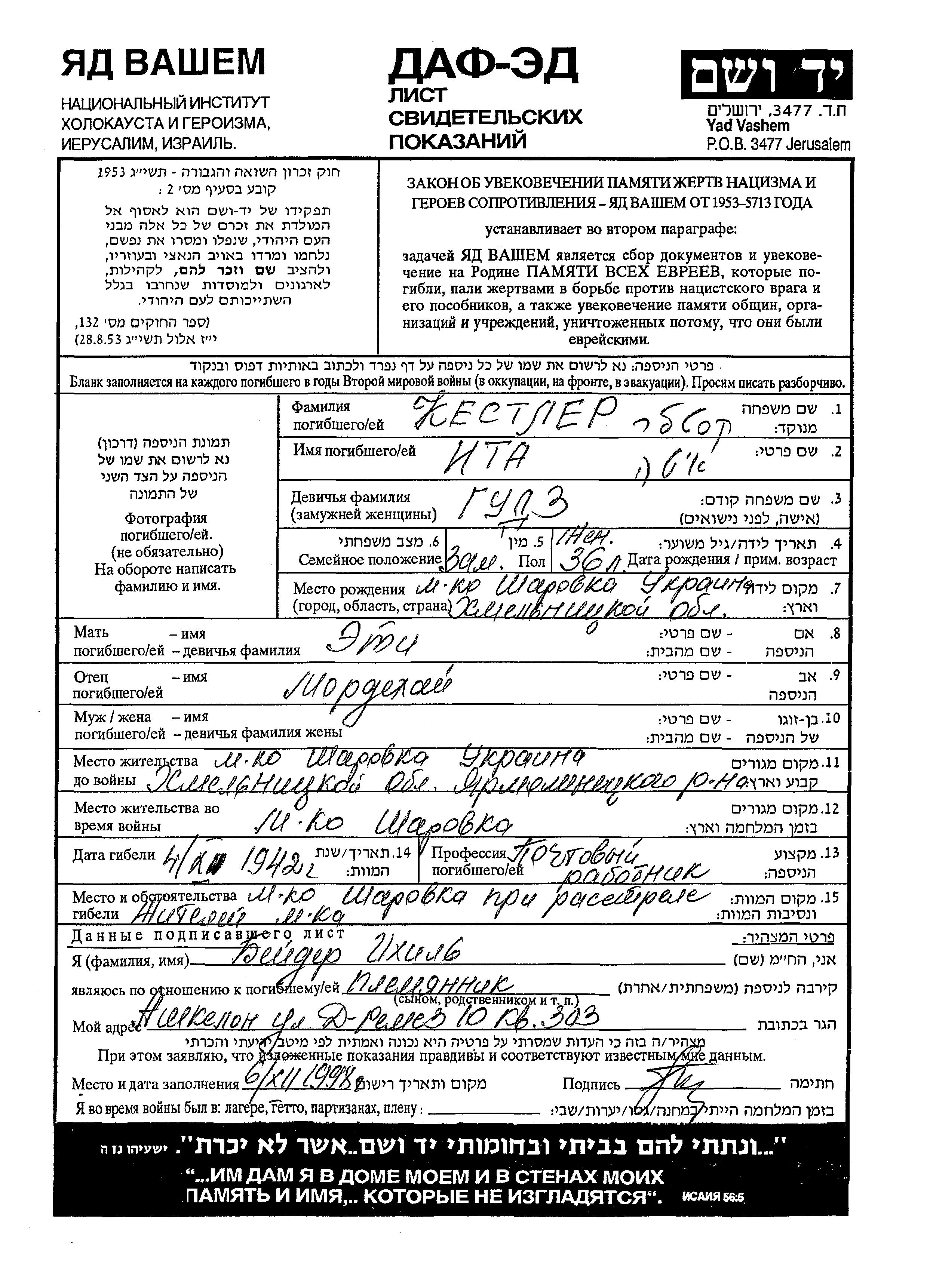 Ita wurde in der Schoah ermordet. Todesort: Sharovka, Ukraine (UdSSR) im Jahr 1942.