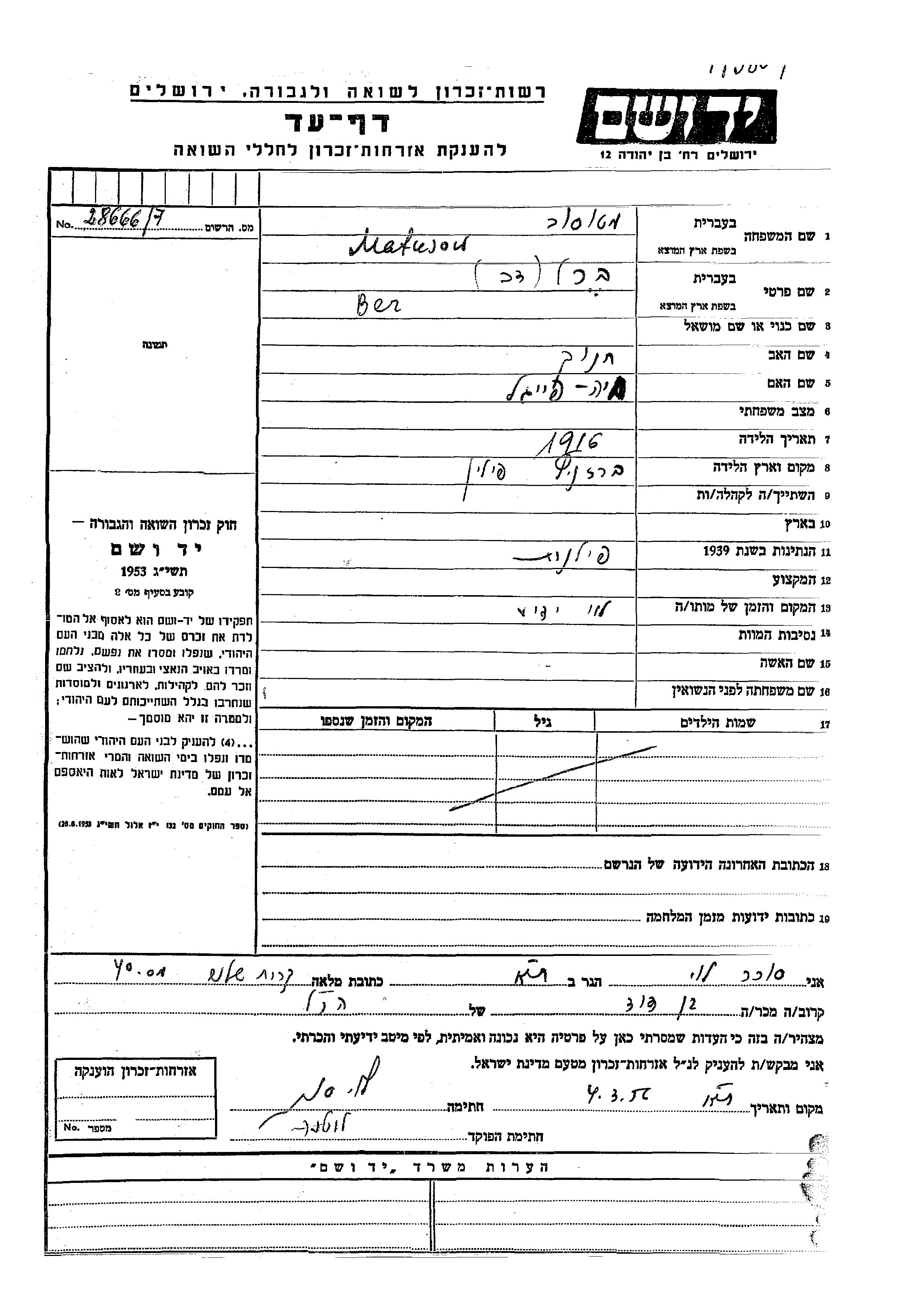 Suche nach einem Todesjahr im Zeitraum der Holocaust: 1933 bis 1945. Bitte wählen Sie 'Exakt' im Auswahlmenü, um nur nach einem einzelnen Jahr zu suchen, alternativ können Sie die flexibleren Optionen '+/- 2 Jahre' oder '+/- 5 Jahre' wählen.