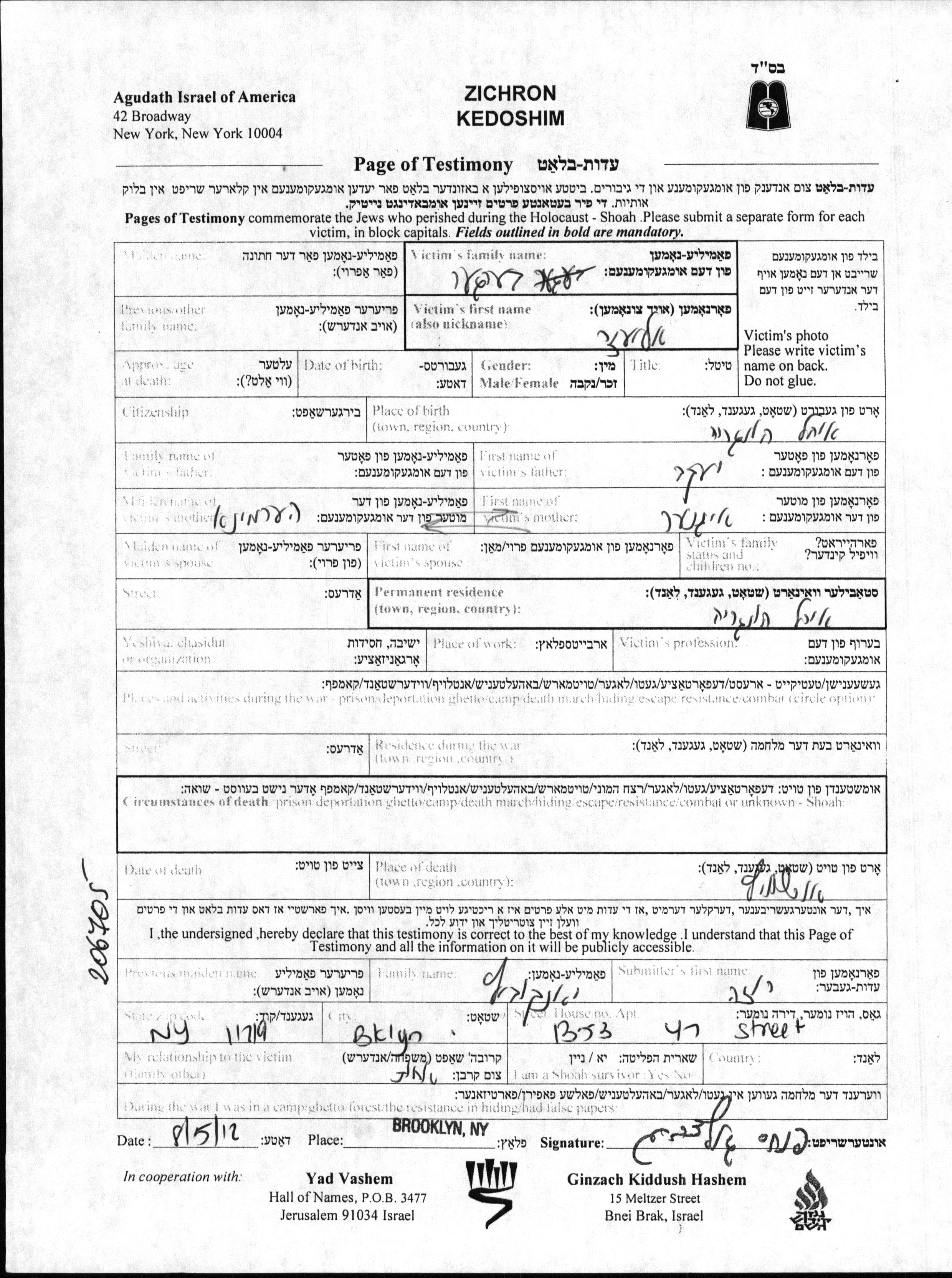 Eliezer wurde in der Schoah ermordet. Todesort: Auschwitz, Polen im Jahr 1944.