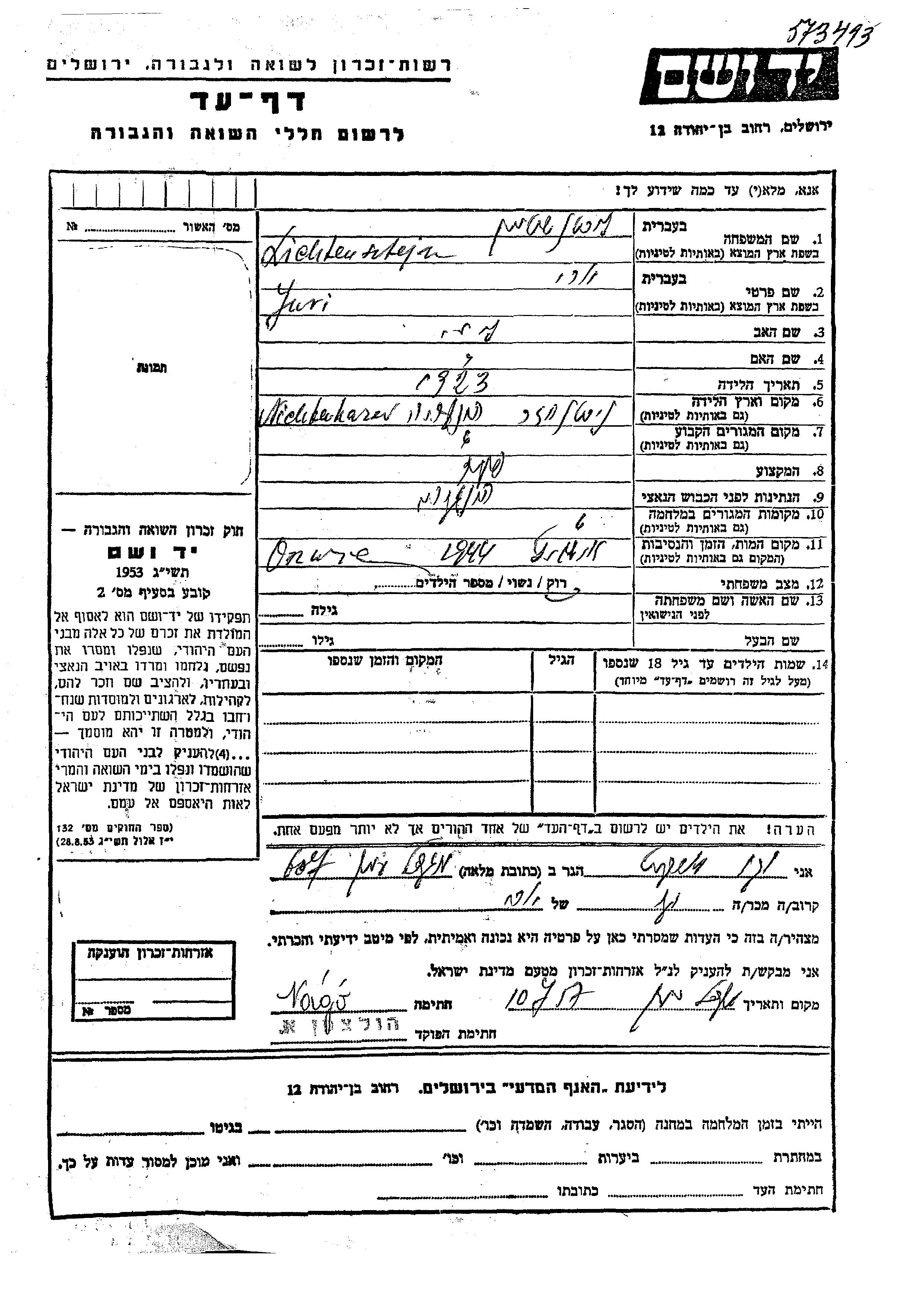 Juri Lichtensztejn wurde im Jahr 1923 in Nyiregyhaza, Ungarn geboren. Er war Angestellte/-r und Ledig. Vor dem Zweiten Weltkrieg lebte er in Nyiregyhaza, Ungarn. Während des Krieges war er in Nyiregyhaza, Ungarn.
